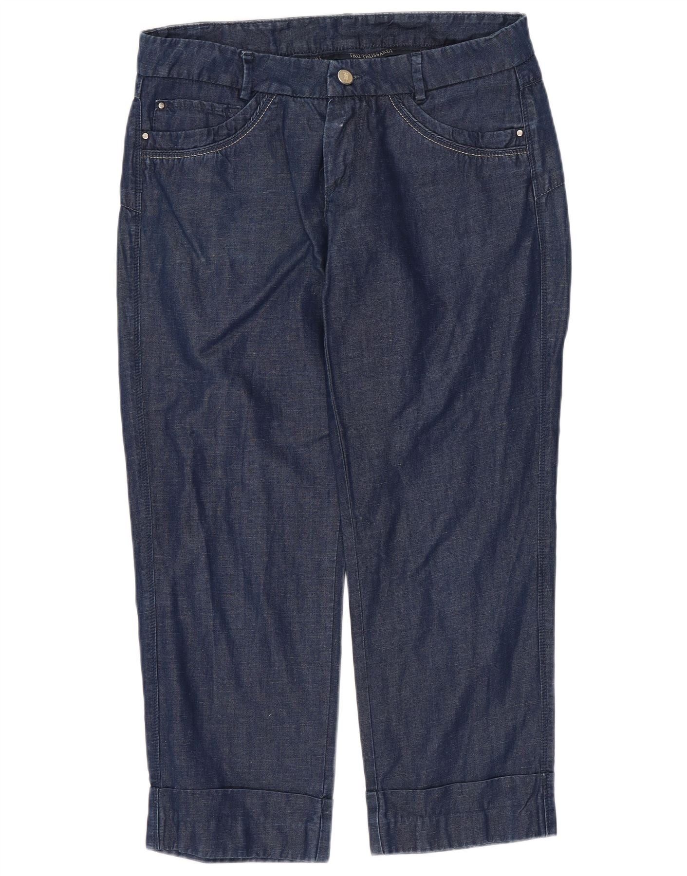 TRUSSARDI Vaqueros recortados para mujer W26 L24 Algodón azul marino
