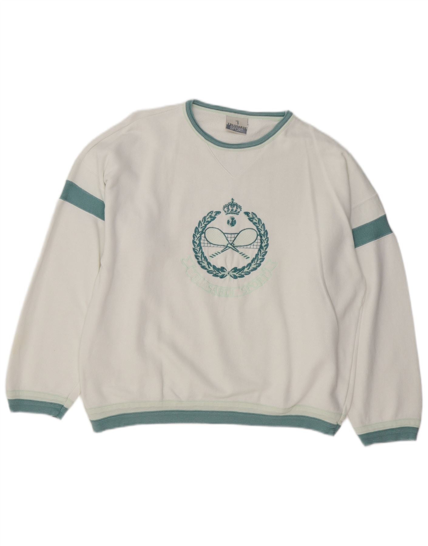 TRUSSARDI Sudadera gráfica para mujer Jersey IT 46 Grande Algodón blanco