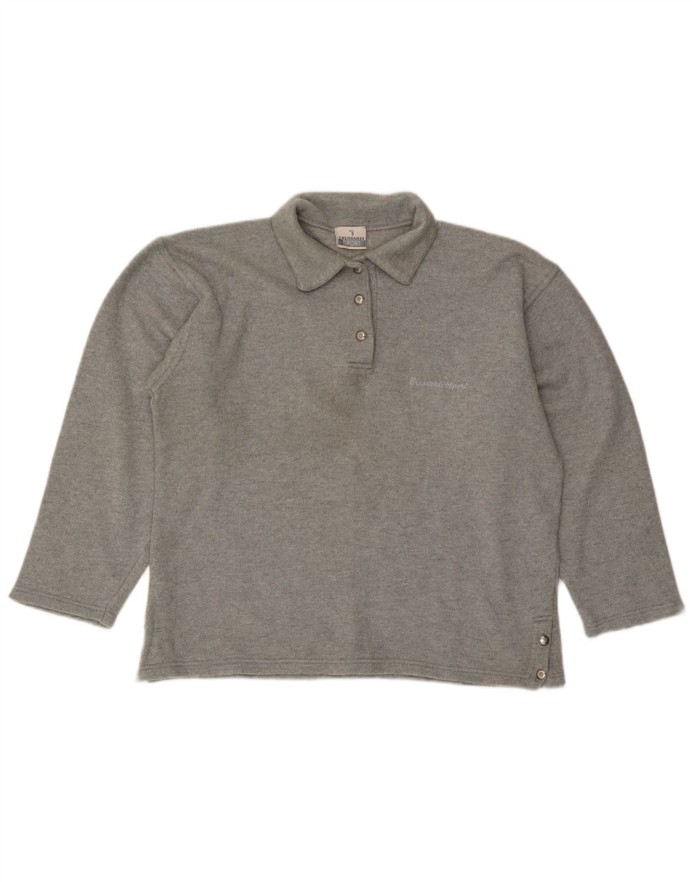 TRUSSARDI Jersey extragrande con cuello tipo polo para mujer IT 44 Lana gris medio