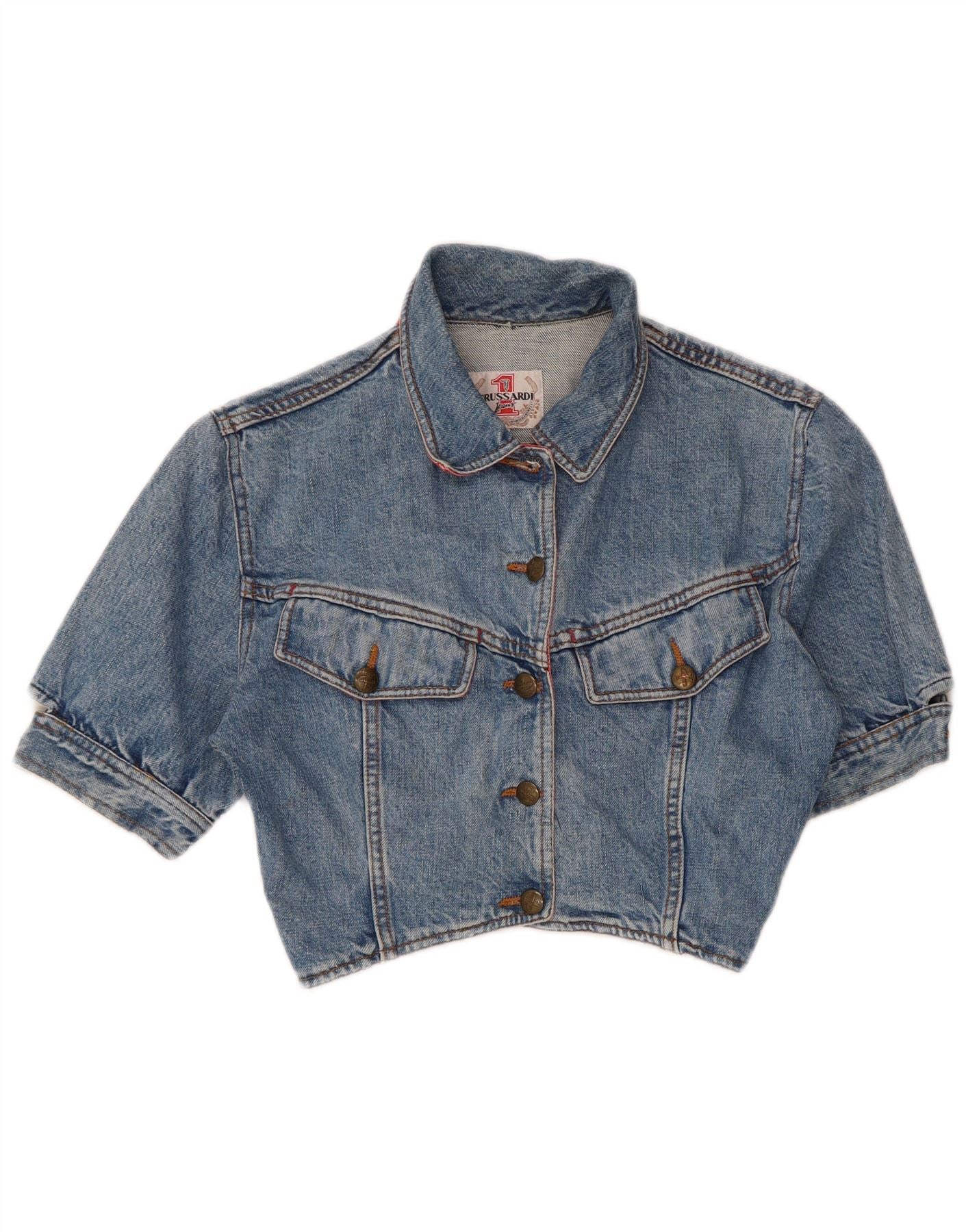 TRUSSARDI Chaqueta Bolero Vaquera de Manga Corta para Mujer IT 42 Algodón Azul Medio