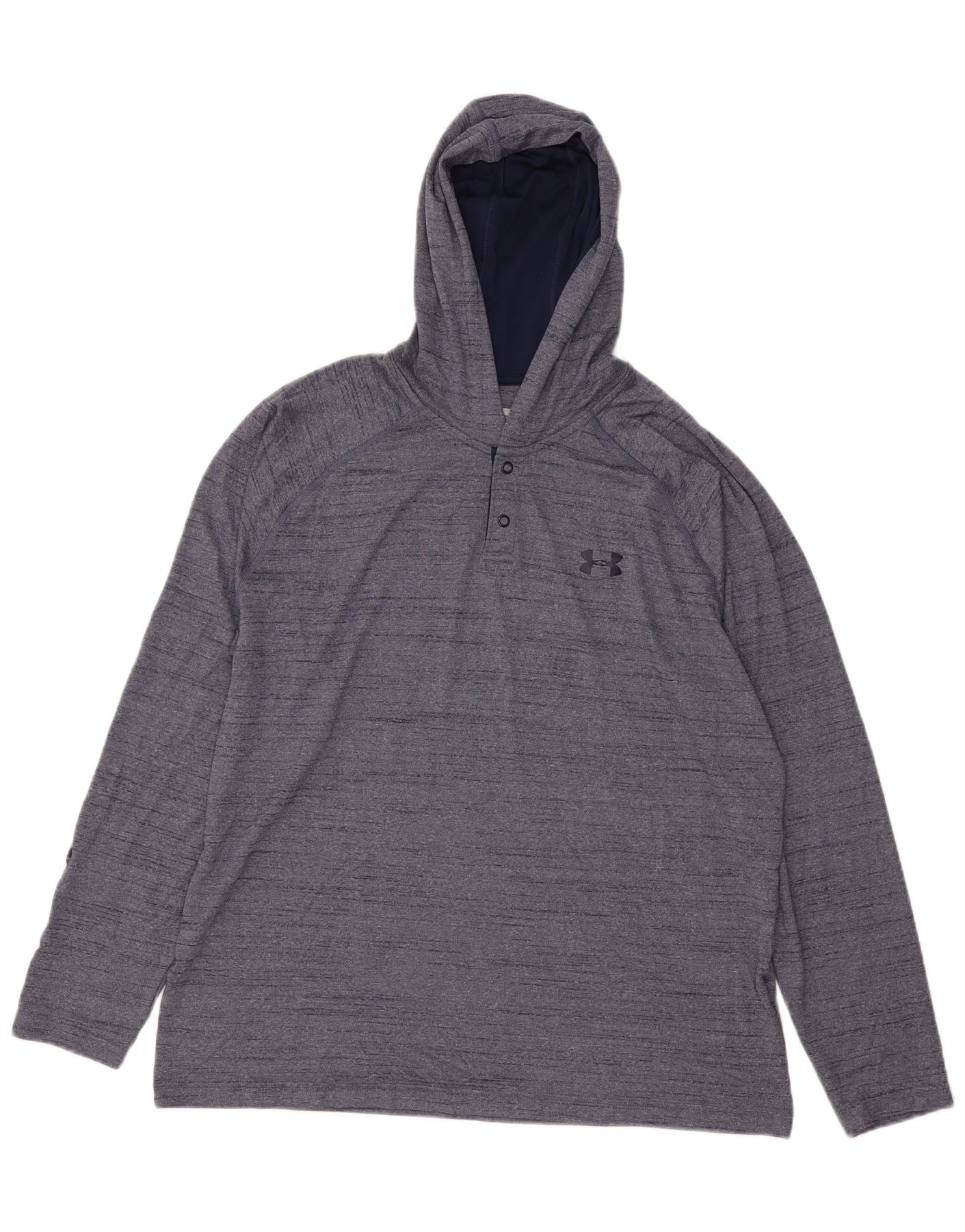 UNDER ARMOUR Camiseta con capucha Heat Gear para hombre de manga larga con moteado azul marino grande