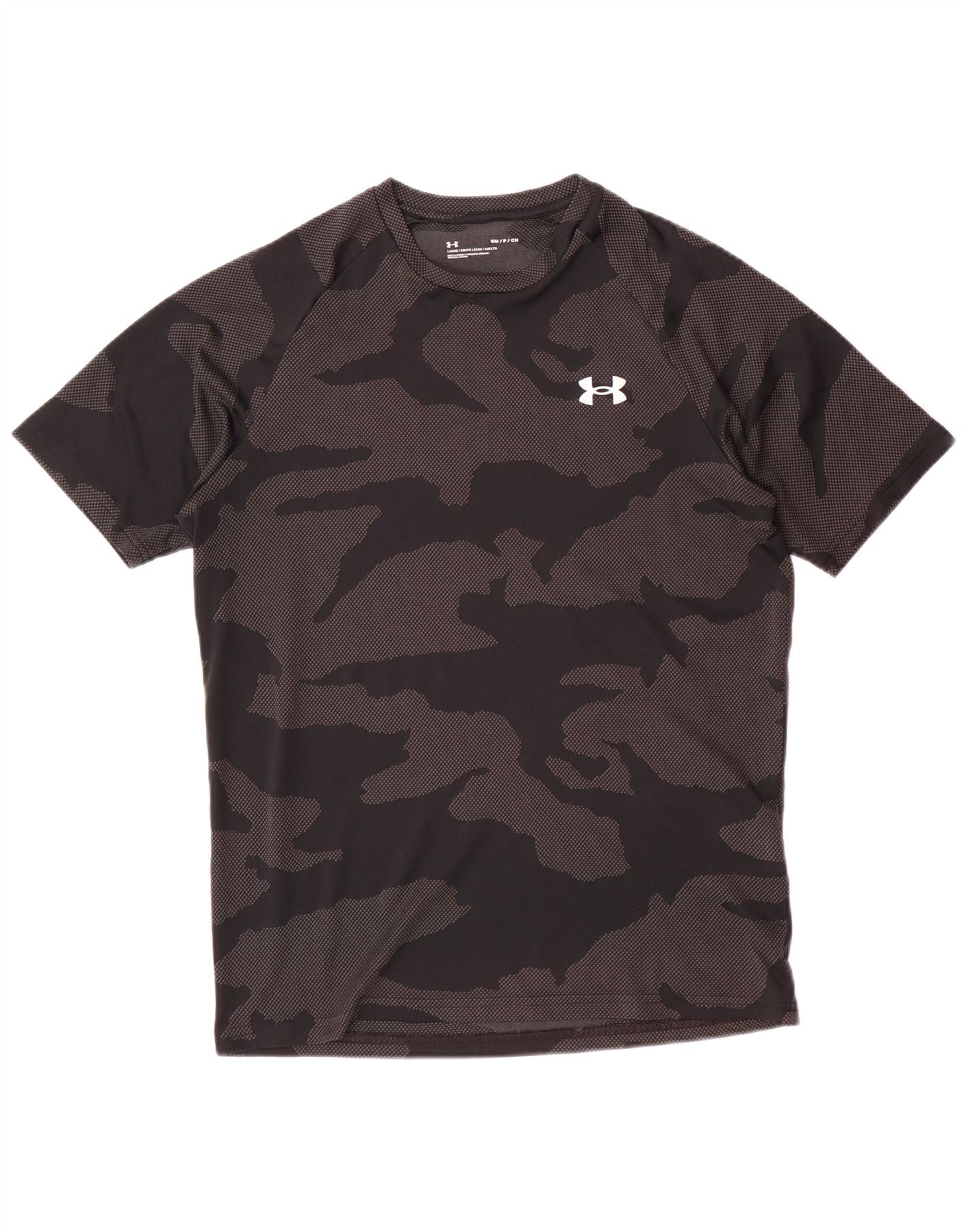 UNDER ARMOUR Mens T-Shirt Top Small Black Camouflage Polyester