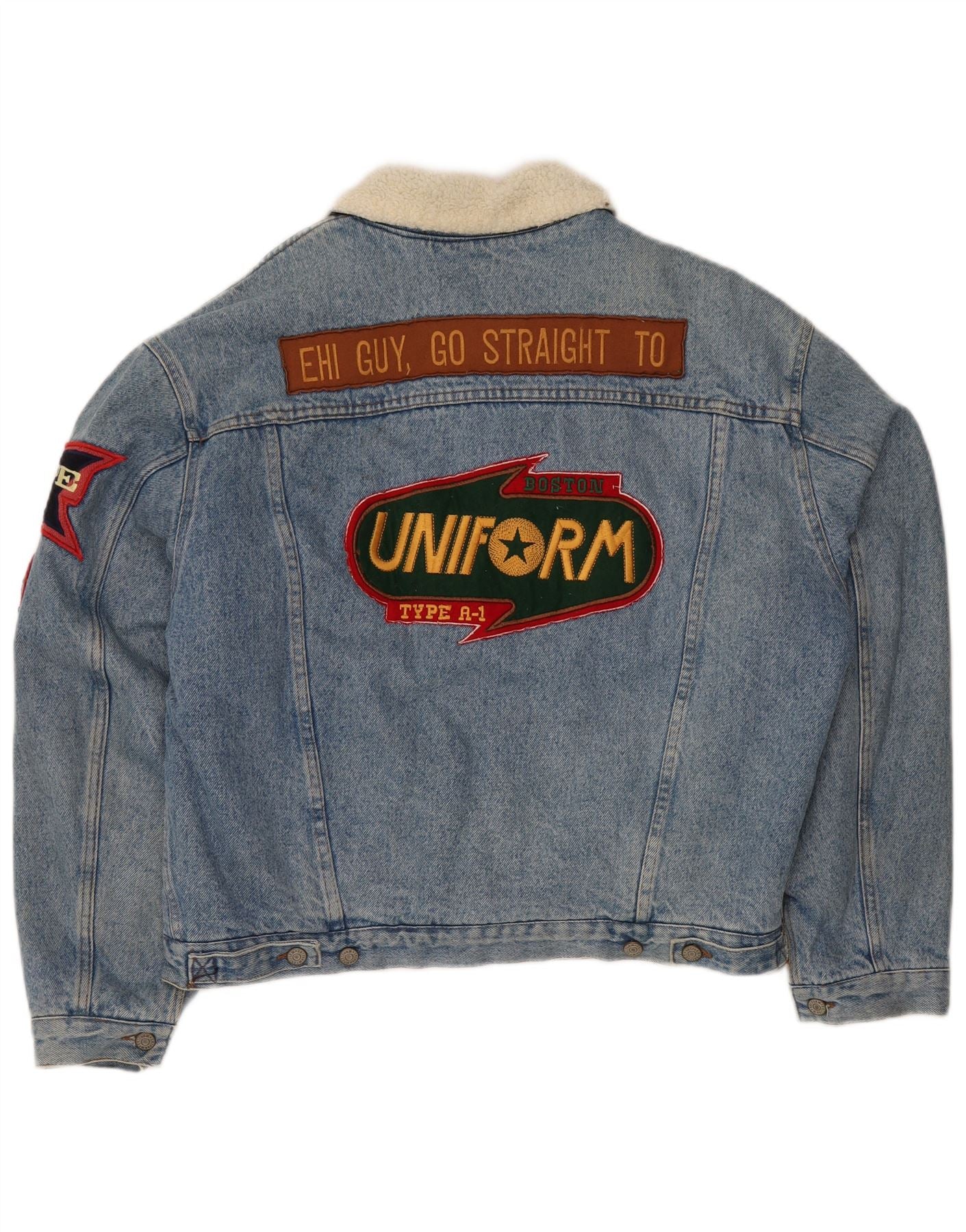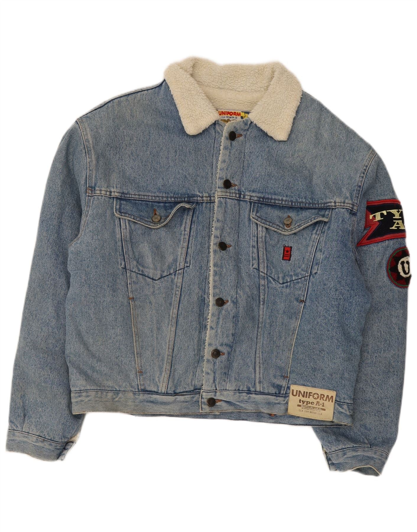 UNIFORM Chaqueta Sherpa vaquera con gráfico tipo A-1 para hombre, talla 40, color azul