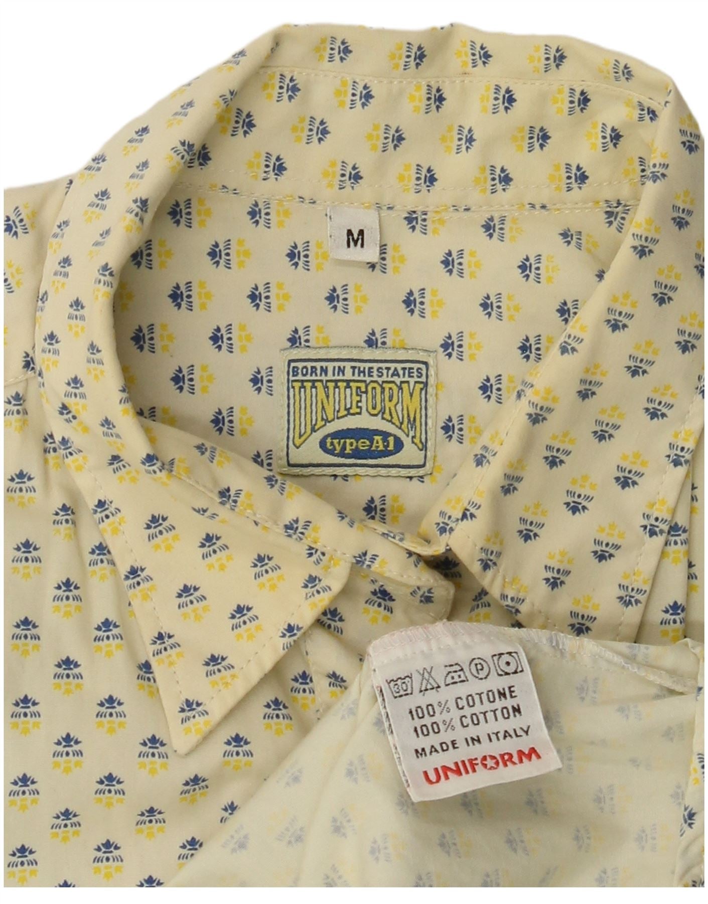 UNIFORM Camisa holgada con estampado abstracto para mujer UK 40 Algodón amarillo medio
