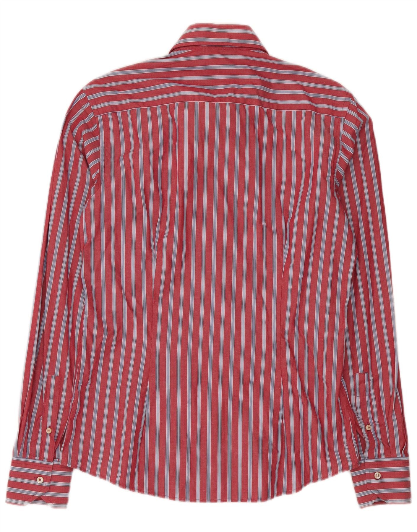 VALENTINO Camisa slim fit para hombre Talla 15 1/2 40 Algodón mediano a rayas rojas