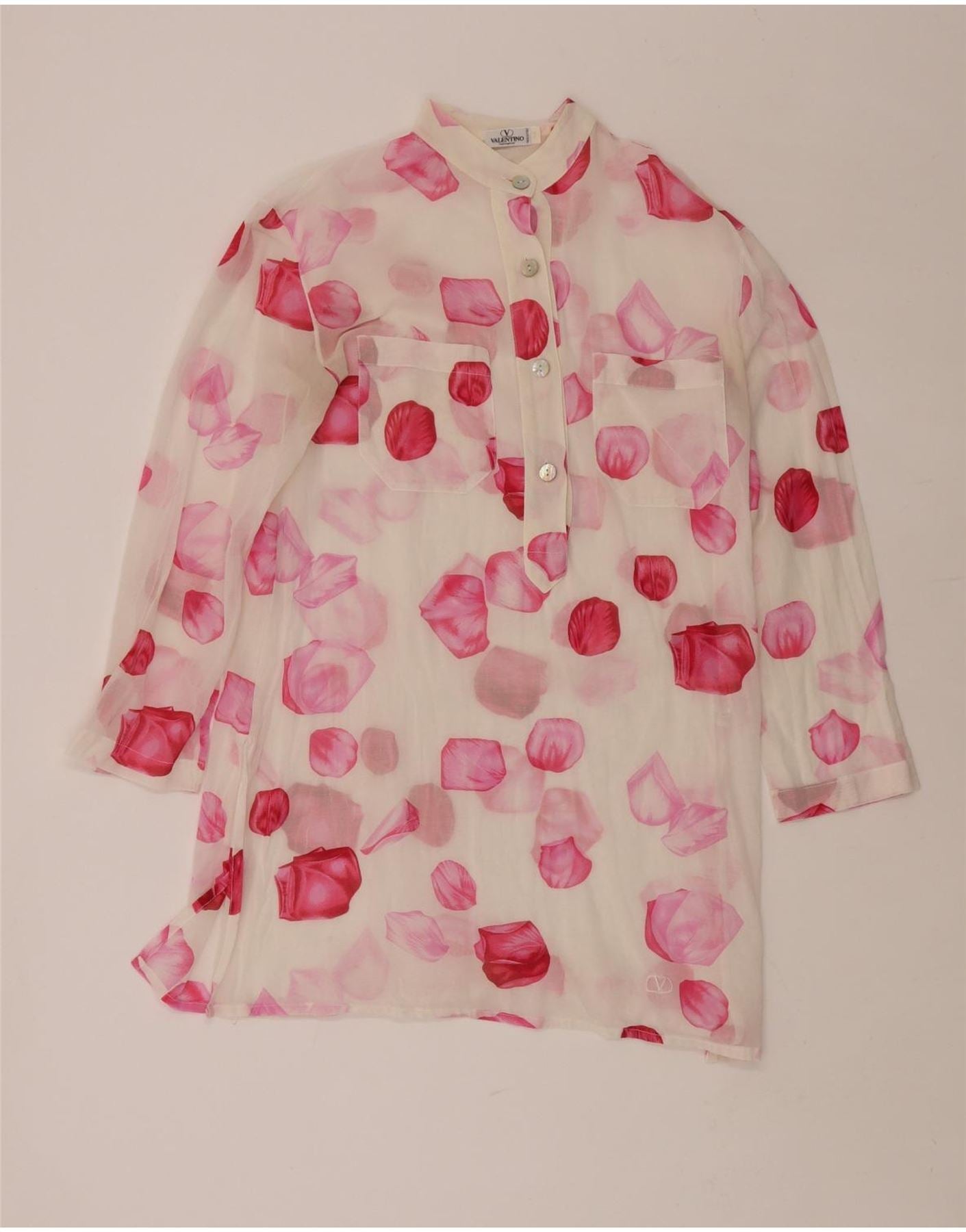 VALENTINO Camisa tipo jersey transparente para mujer IT 42 Medium White Floral