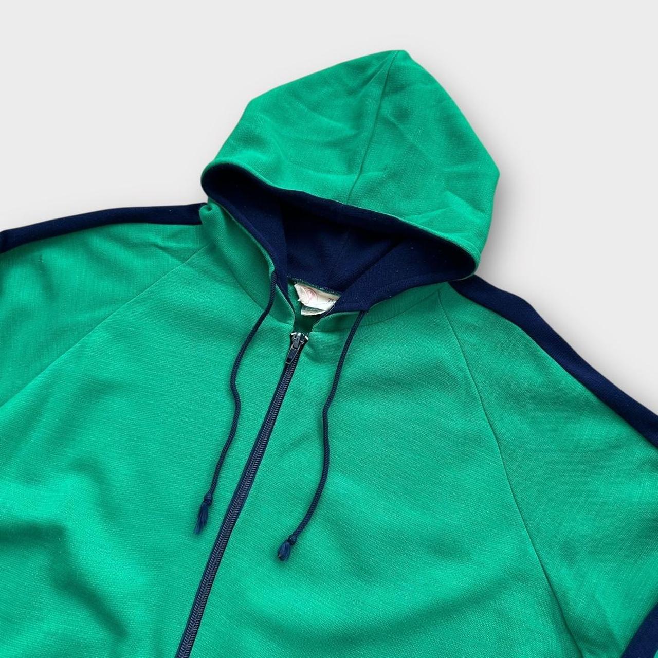 Sudadera con capucha vintage de los años 70/80 hecha en Reino Unido con cremallera en verde y detalles en azul marino