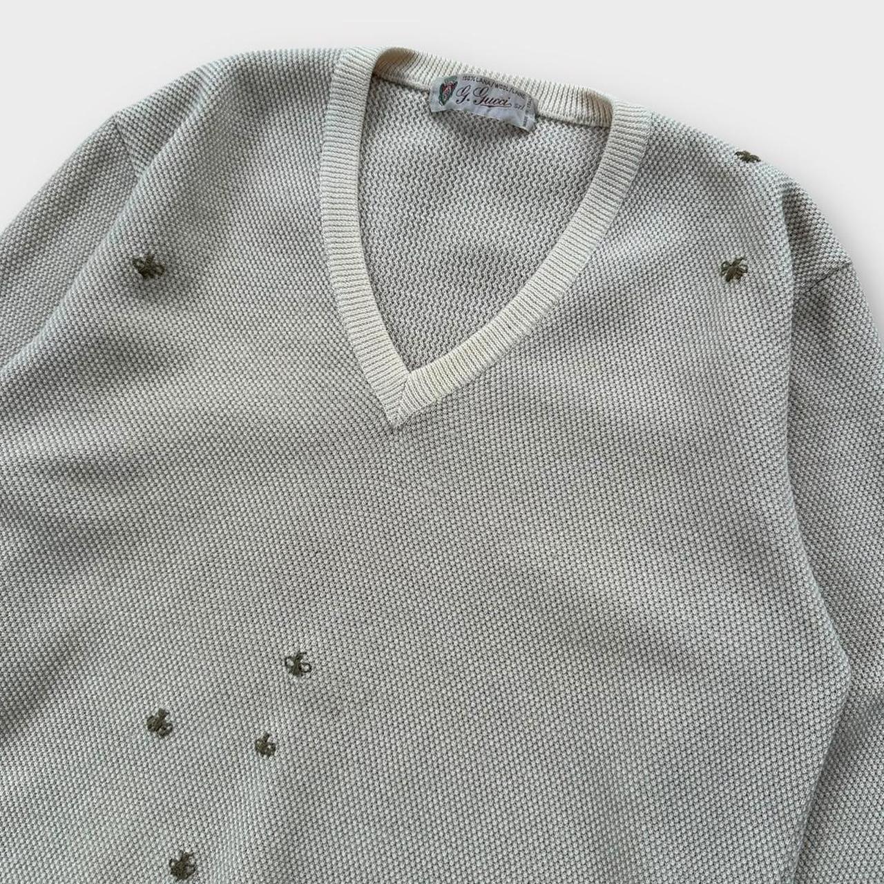 Jersey de punto Gucci original vintage de los años 90 en color beige con G bordadas y abejas Gucci en todas partes que se muestran en las fotos.
