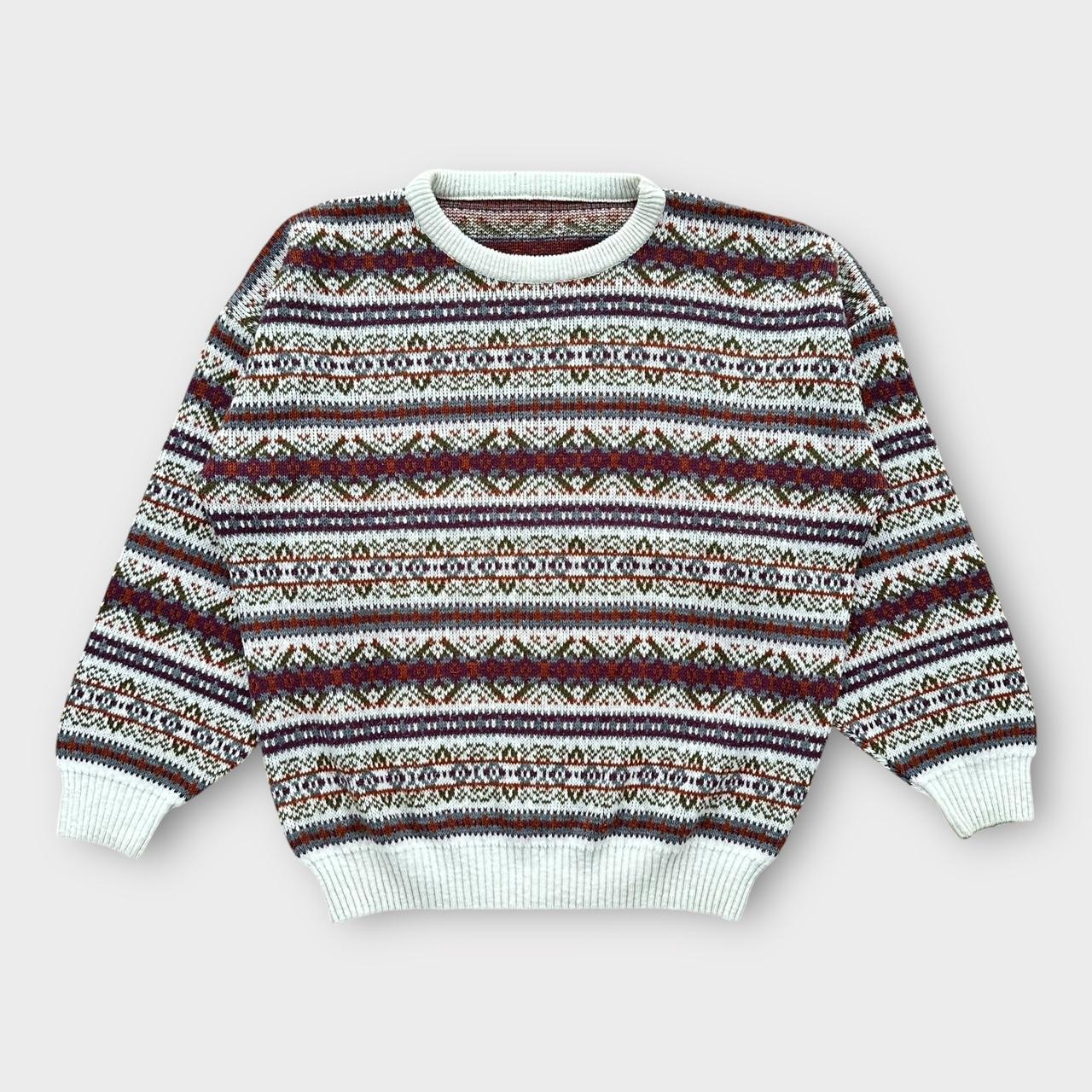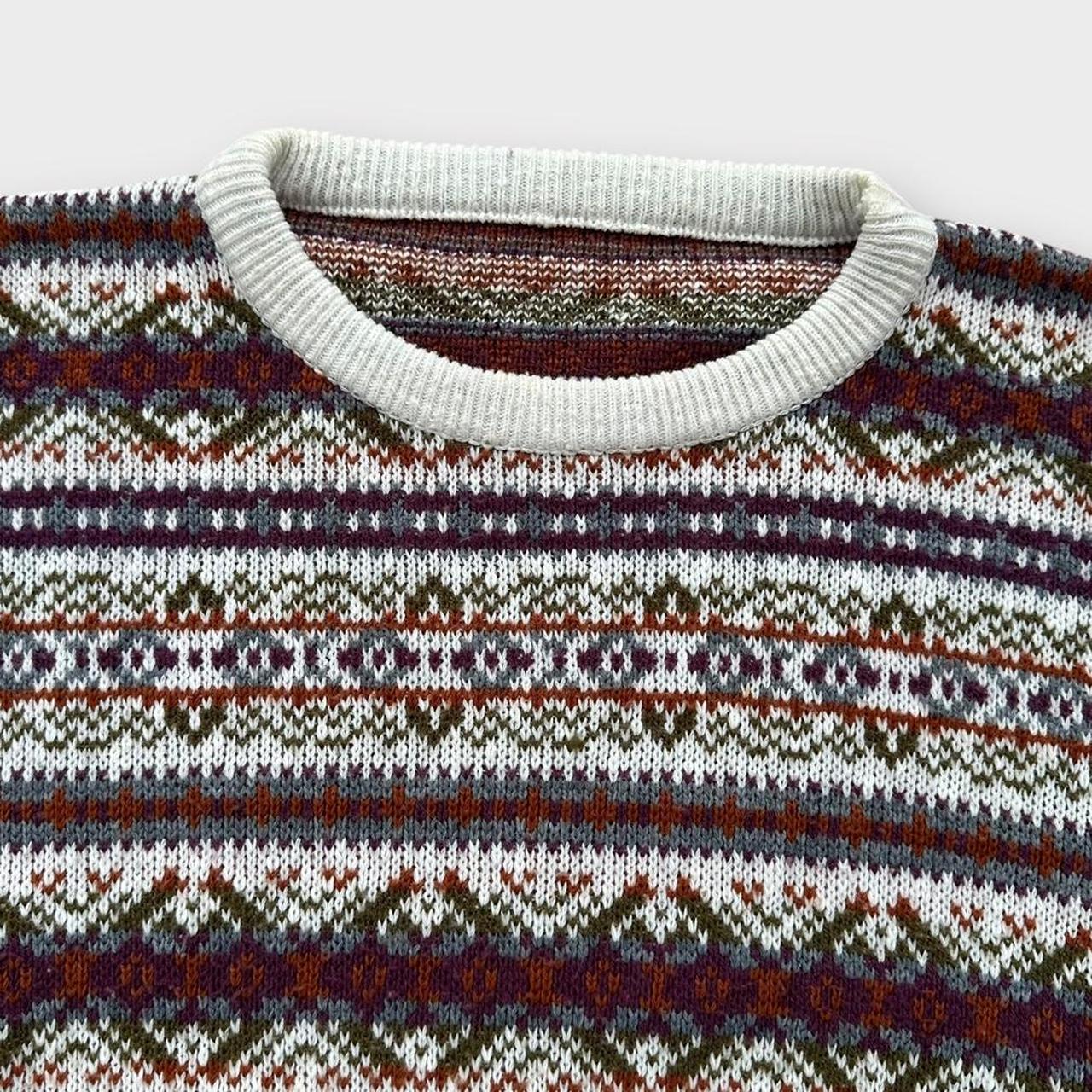 Jersey de punto con estampado abstracto vintage de los años 90 en colores otoñales hecho en Irlanda
