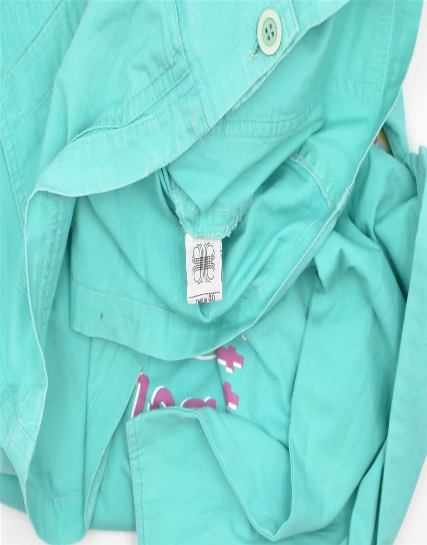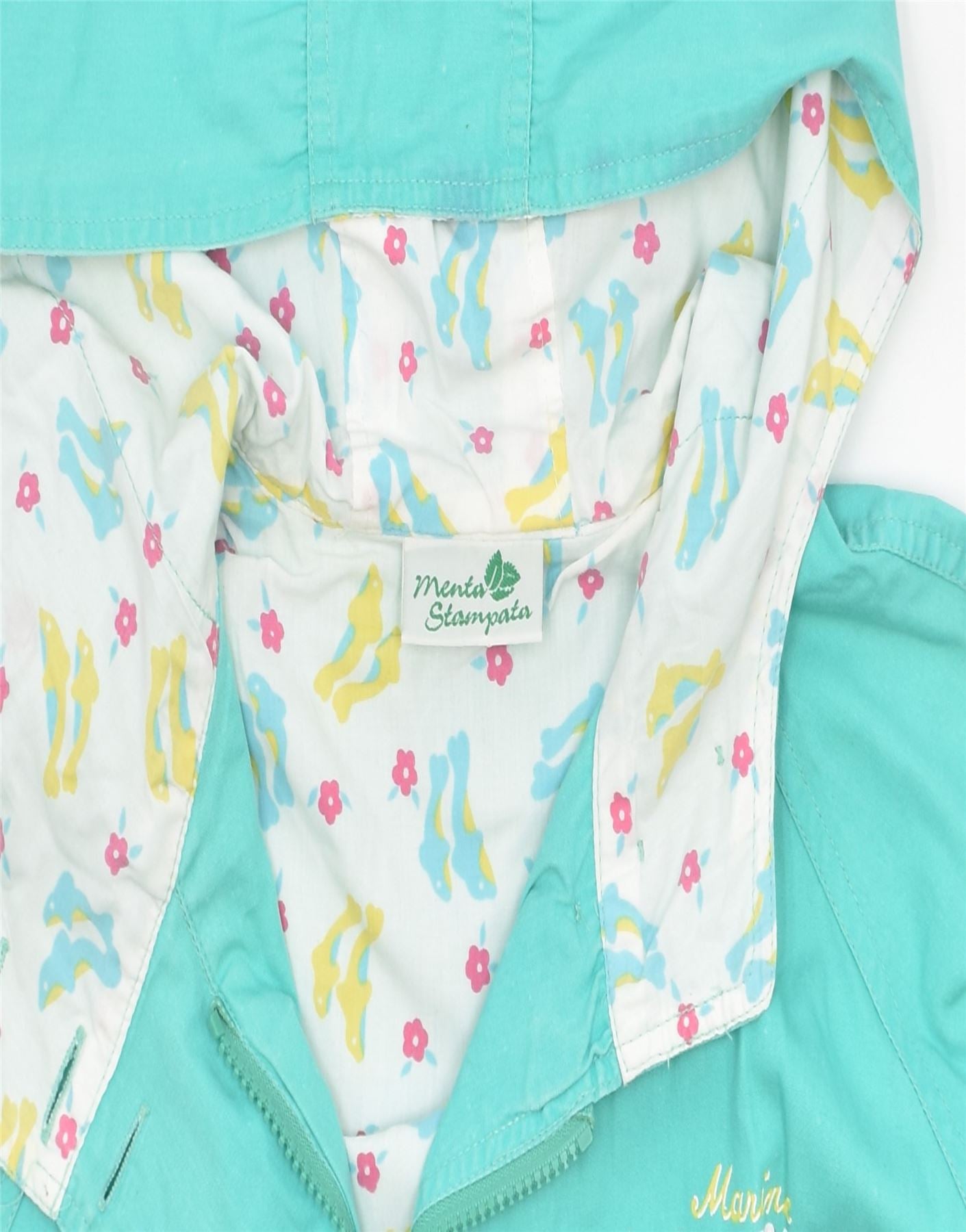 VINTAGE Abrigo con capucha gráfico para mujer IT 40 Pequeño algodón turquesa