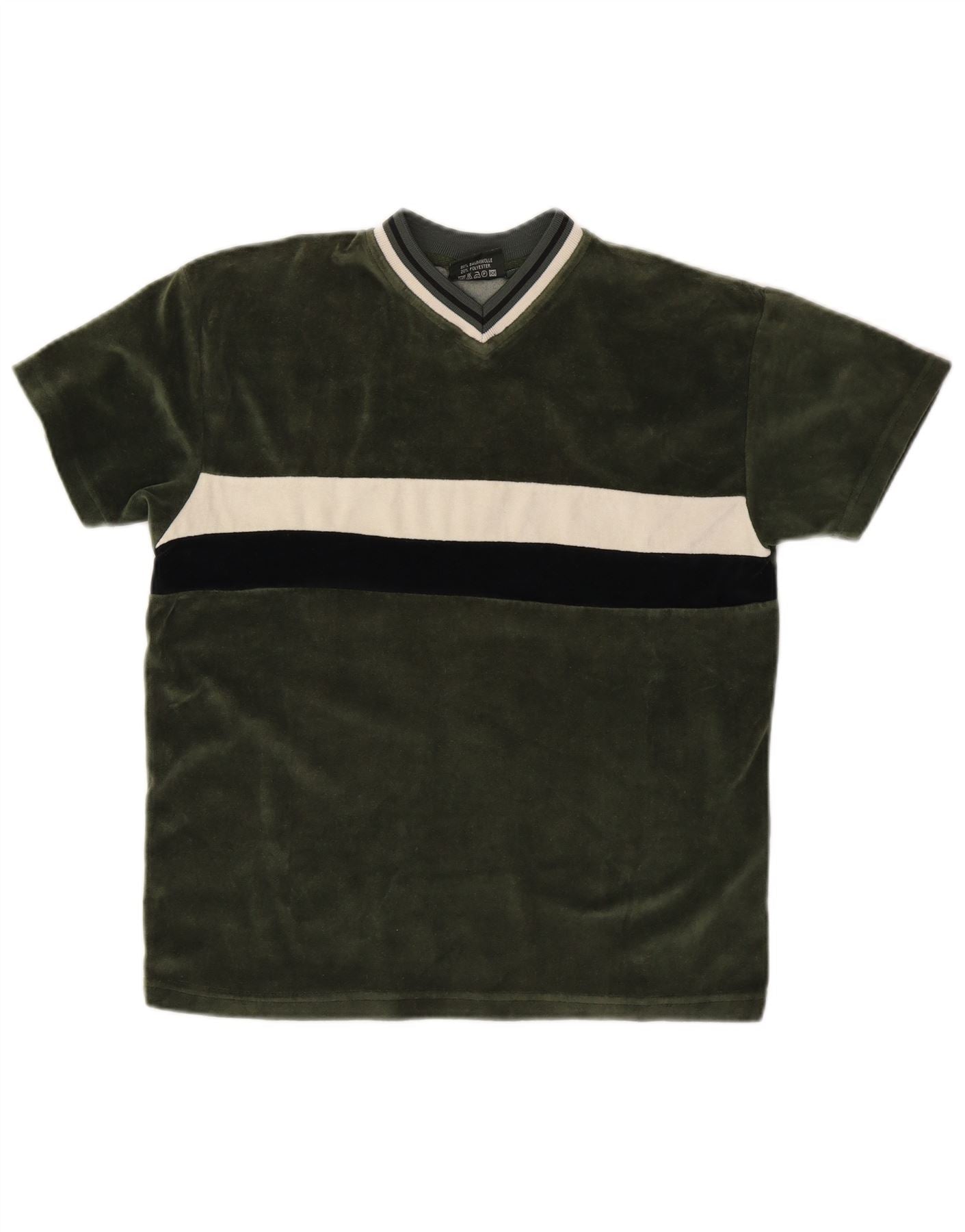 VINTAGE Camiseta para niño Top 12-13 años Algodón color block verde medio