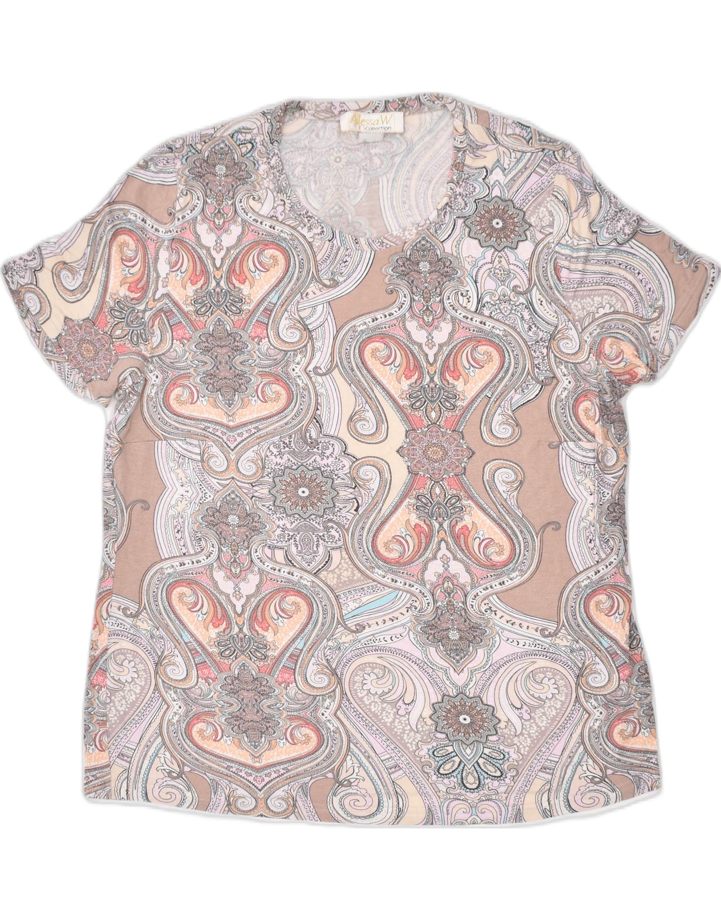 VINTAGE Camiseta de gran tamaño para mujer Top UK 14 Algodón geométrico gris grande