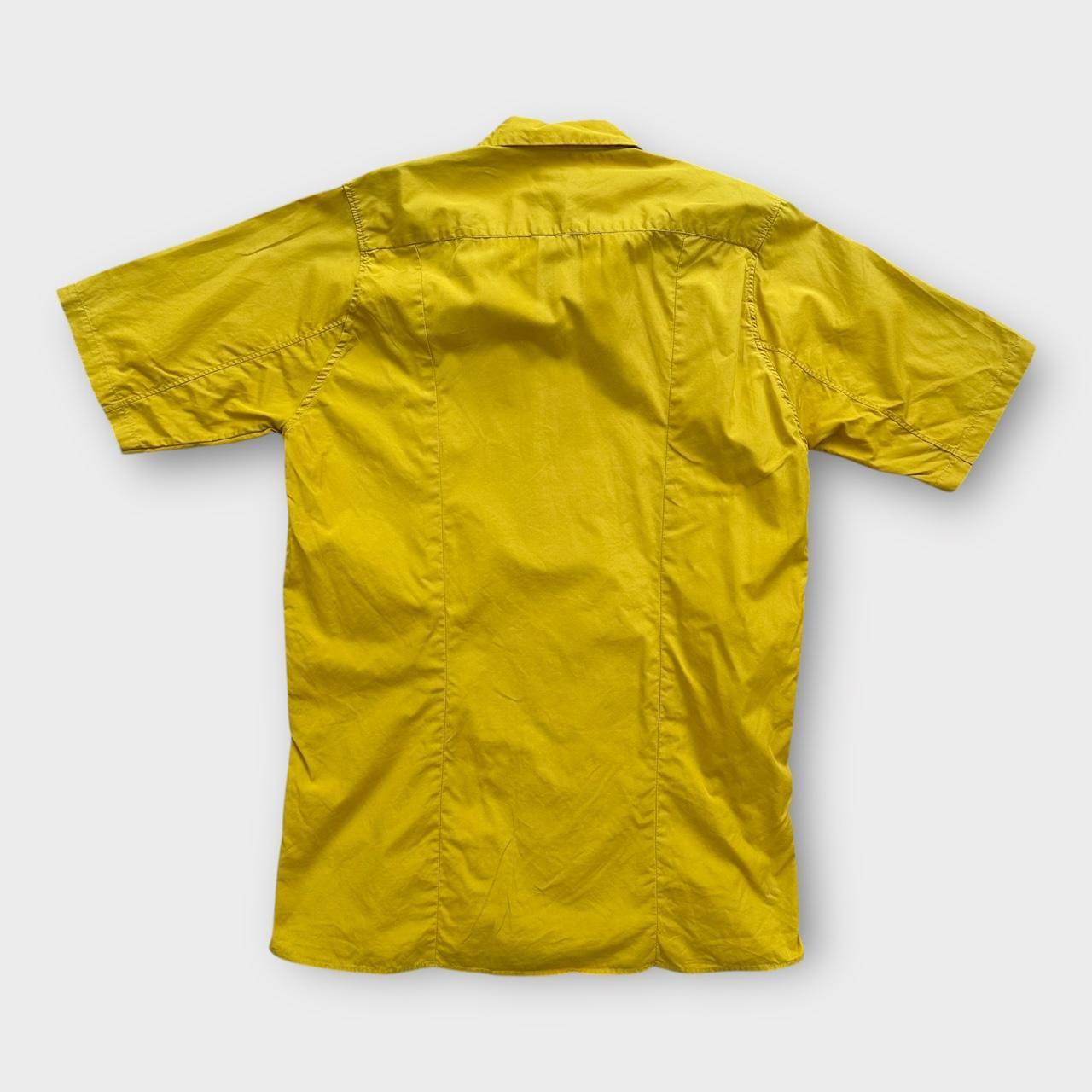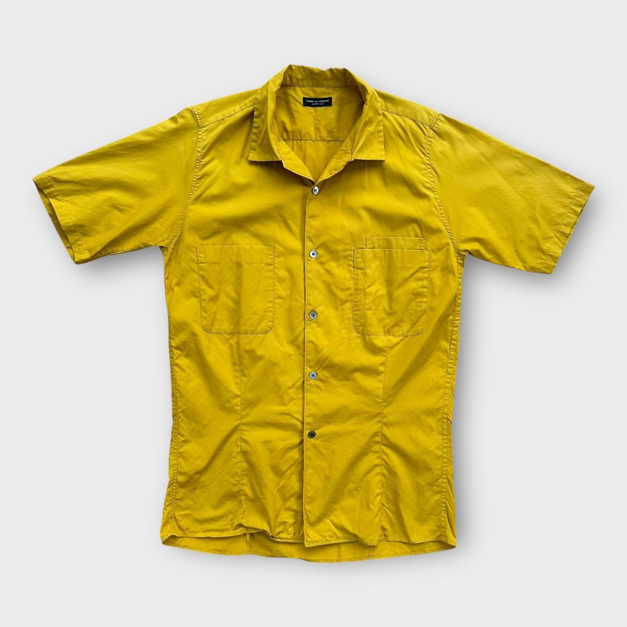 VINTAGE Camisa pullover de manga corta para hombre IT 48 Lino a cuadros azul medio
