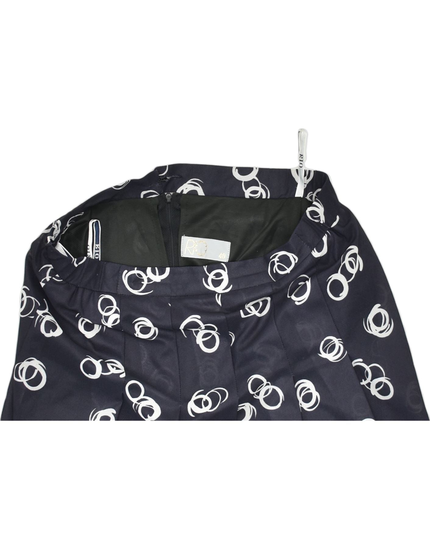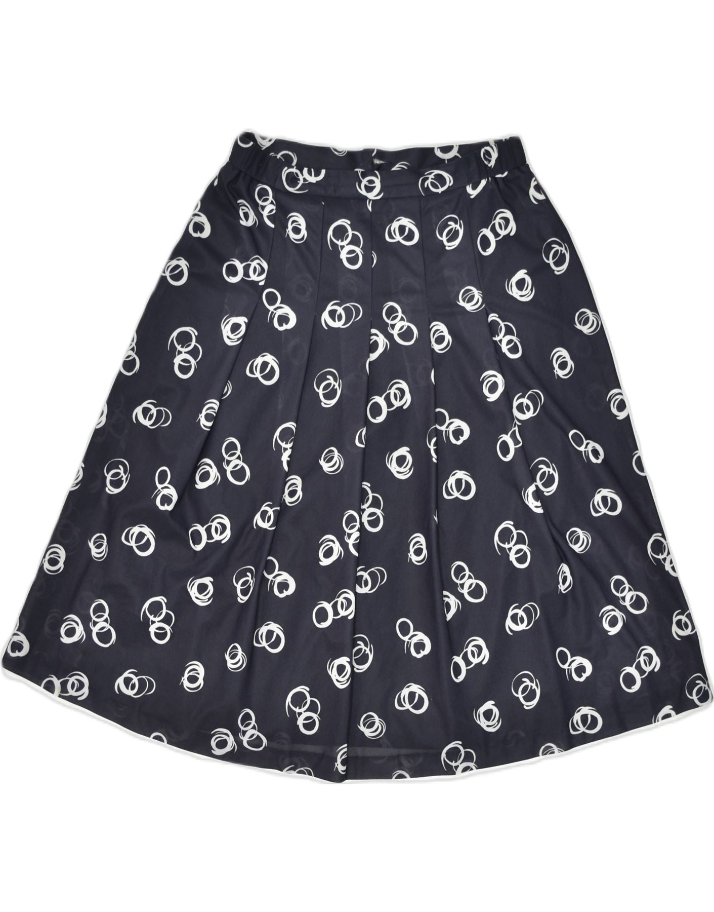 VINTAGE Falda Plisada Mujer IT 40 Pequeña W28 Poliéster Geométrico Azul Marino
