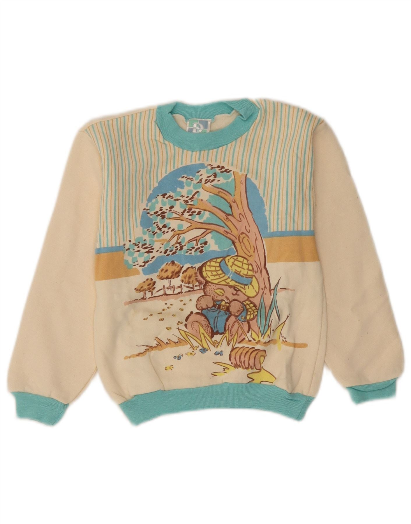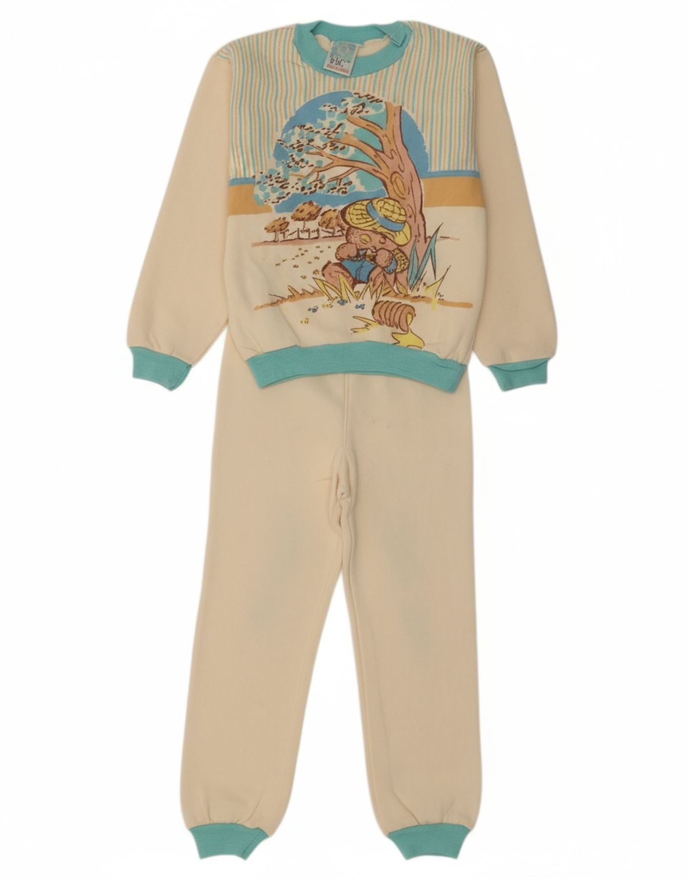 VINTAGE Girls Graphic Full Tracksuit 9-10 Years W20 L20 Off White Cotton