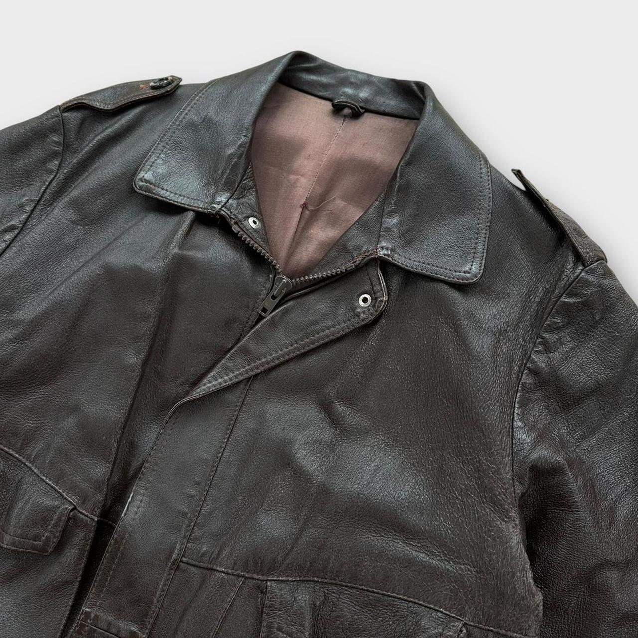 bomber de cuero, estilo aviador, cuero rugoso, chaqueta militar, cuero marrón, oversize, vintage 90s, con cremallera, chaqueta de vuelo, silueta clásica