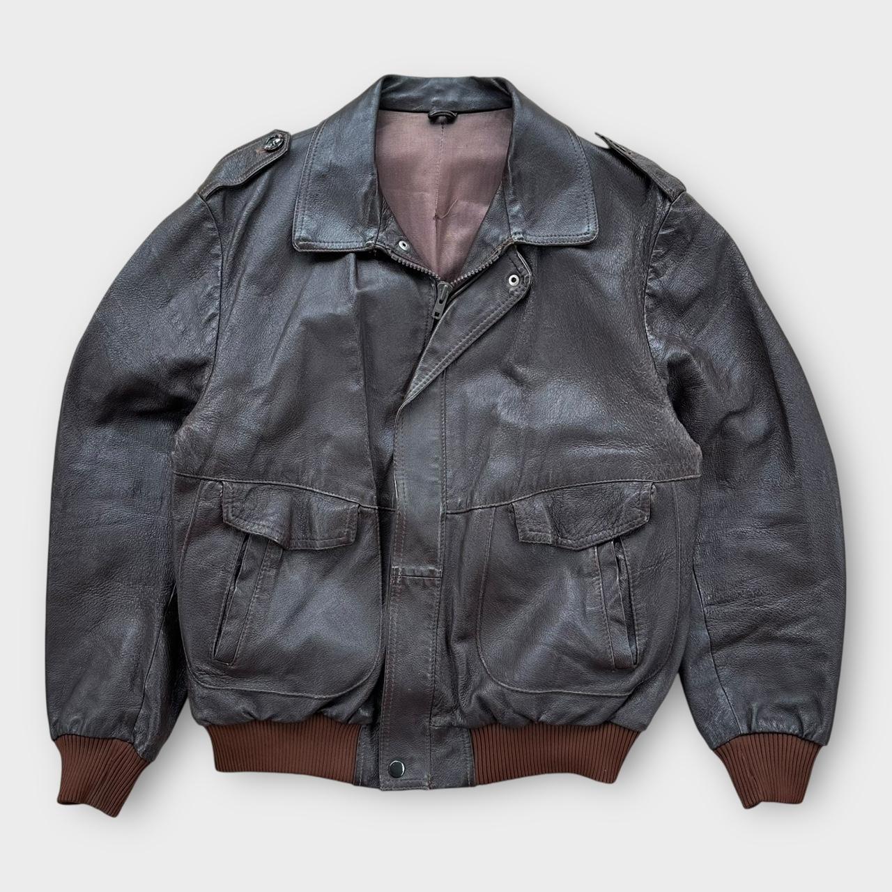 Chaqueta de cuero marrón estilo aviador con cremallera vintage de los años 90