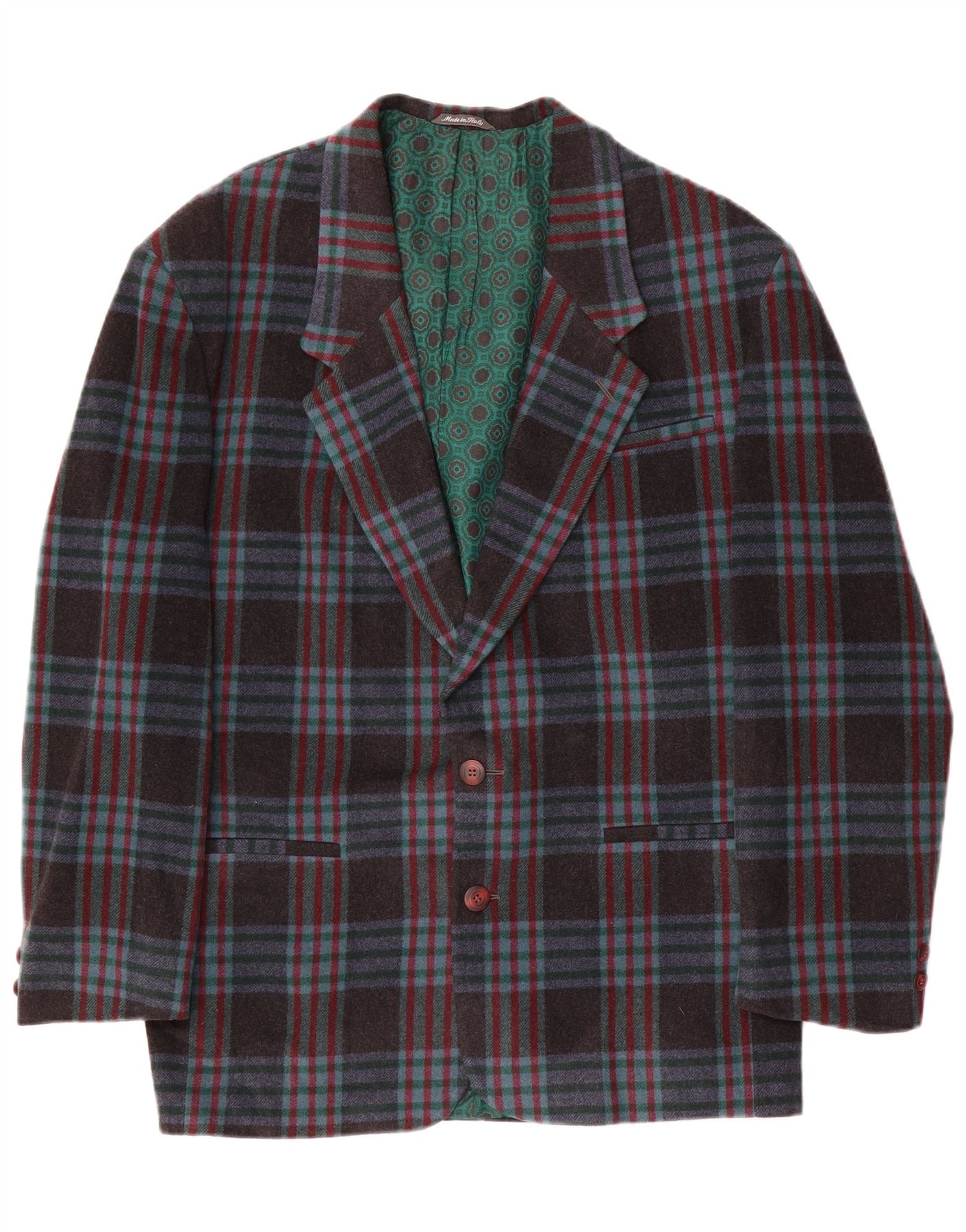 Vintage hombres 2 botones Blazer chaqueta IT 48 medio azul marino comprobar lana