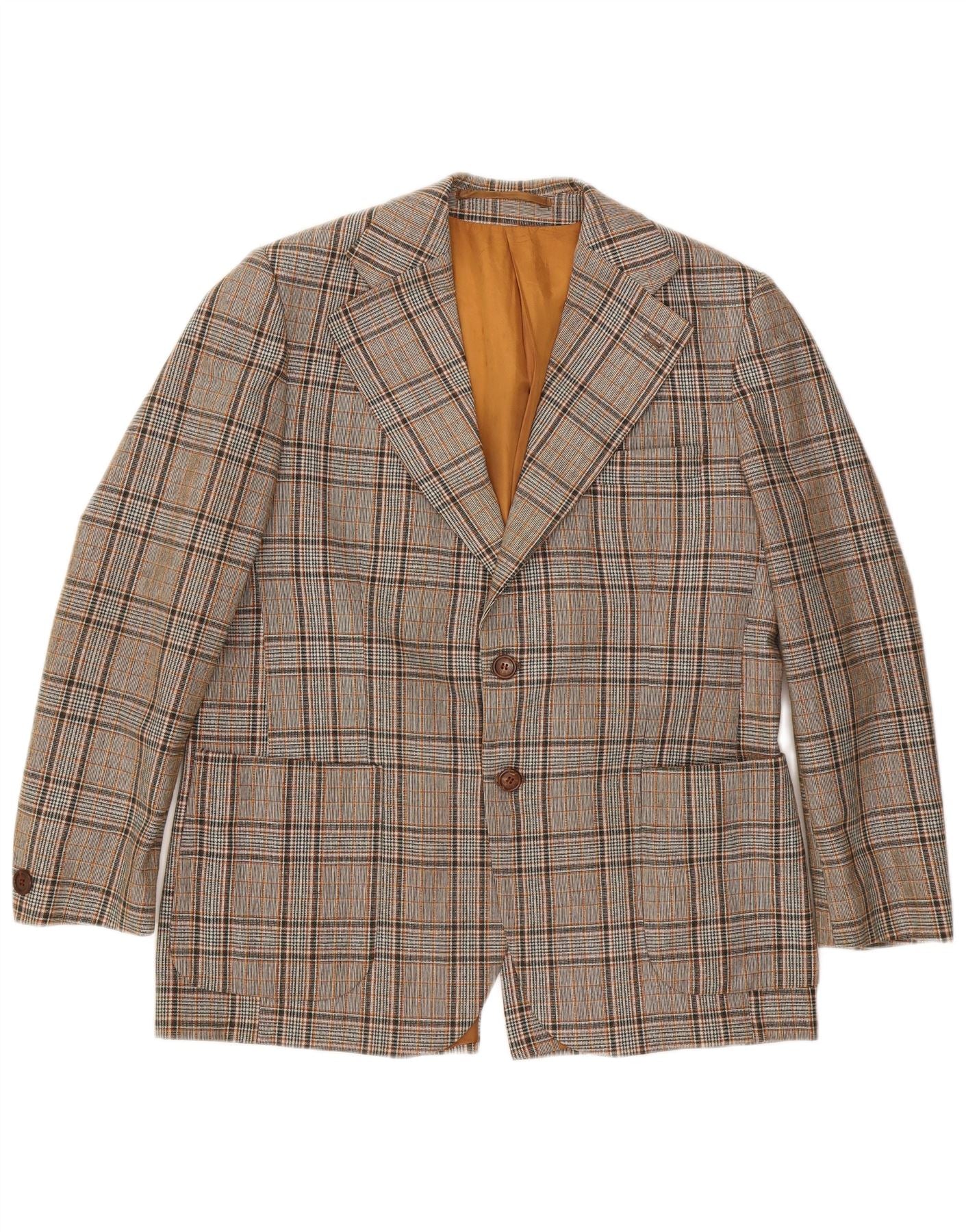 VINTAGE Chaqueta Blazer de 2 botones para hombre Reino Unido 40 Poliéster a cuadros gris grande