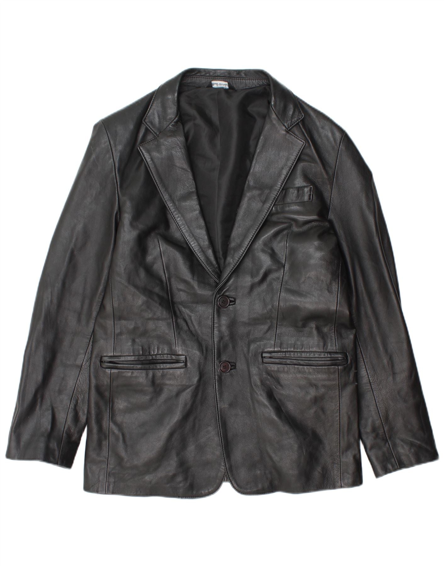 Vintage hombres 2 botones cuero Blazer chaqueta Reino Unido 38 cuero negro medio