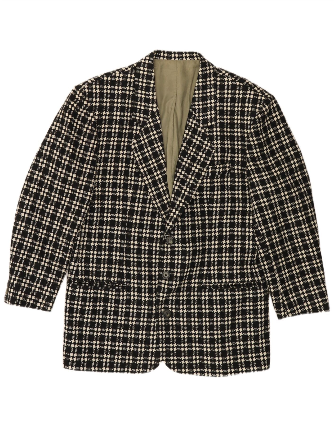 VINTAGE Chaqueta Blazer de 3 Botones para Hombre IT 48 Lana de Pata de Gallo Negra Mediana