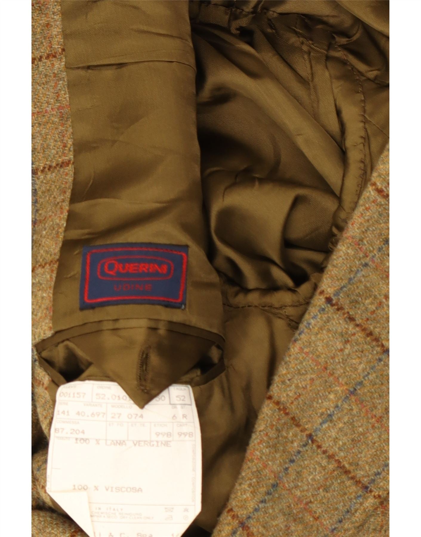 VINTAGE Chaqueta Blazer de 3 Botones para Hombre IT 52 XL Lana a Cuadros Caqui