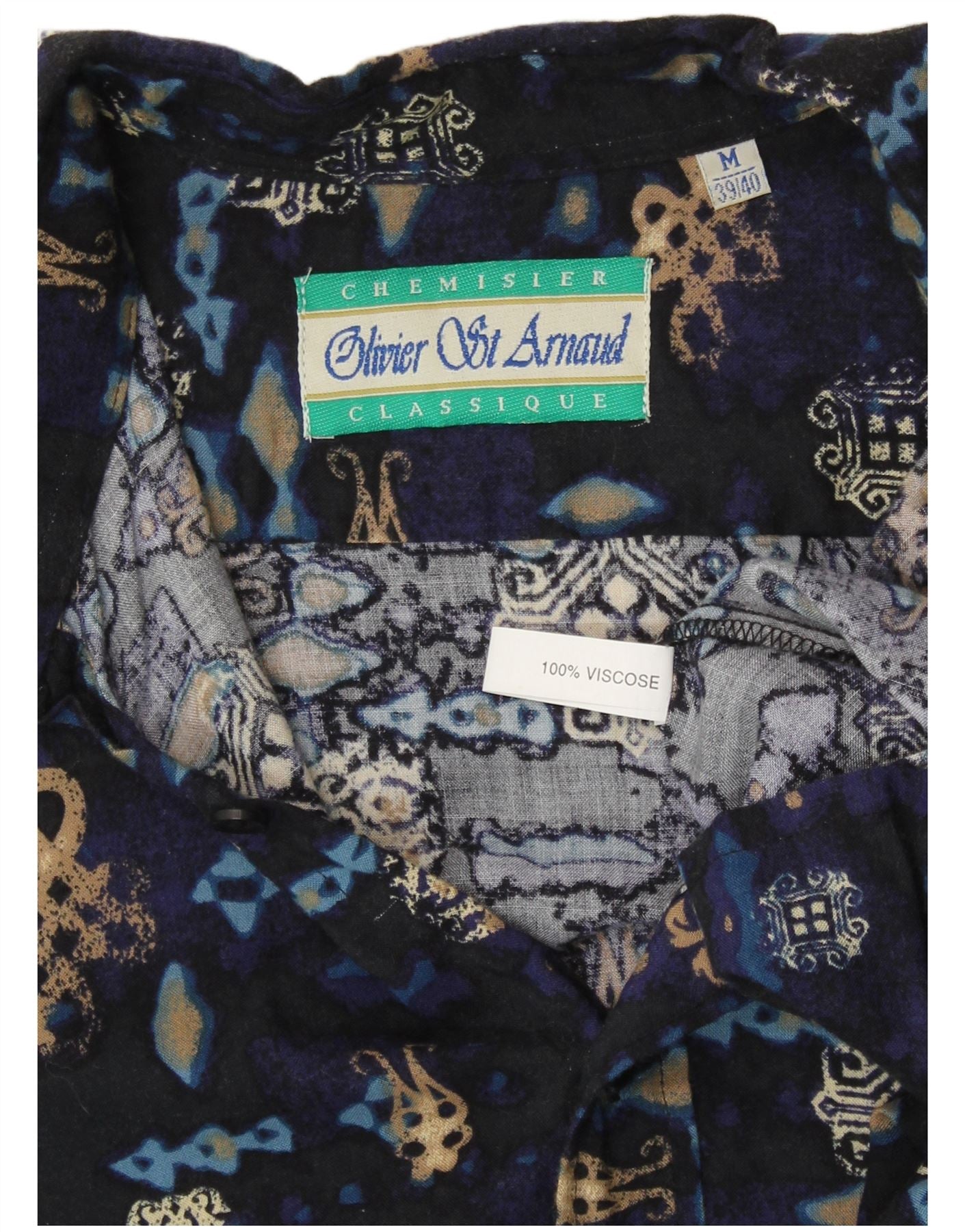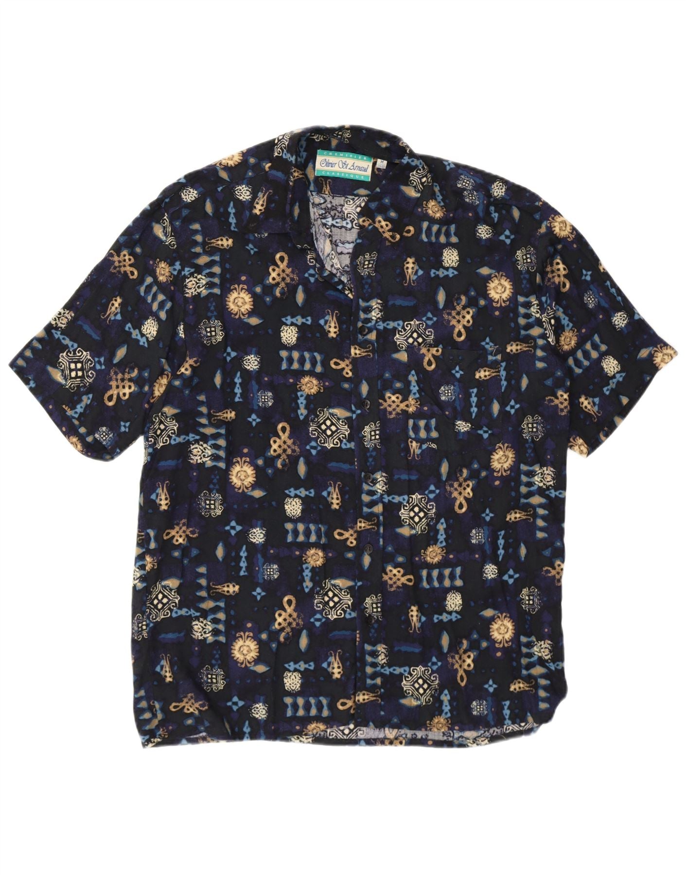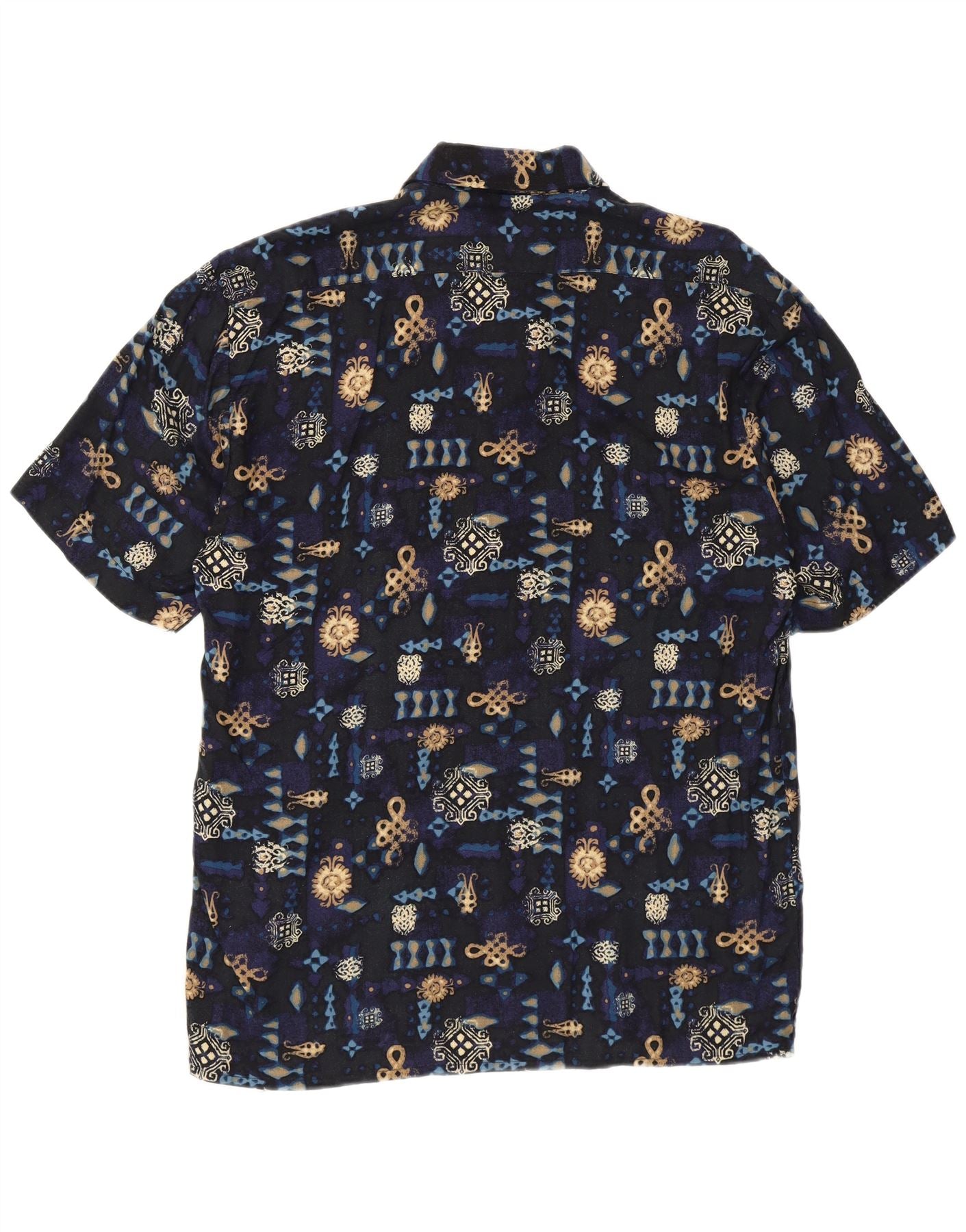 VINTAGE Hombres Patrón Abstracto Camisa Tamaño 39/40 Azul Marino Medio