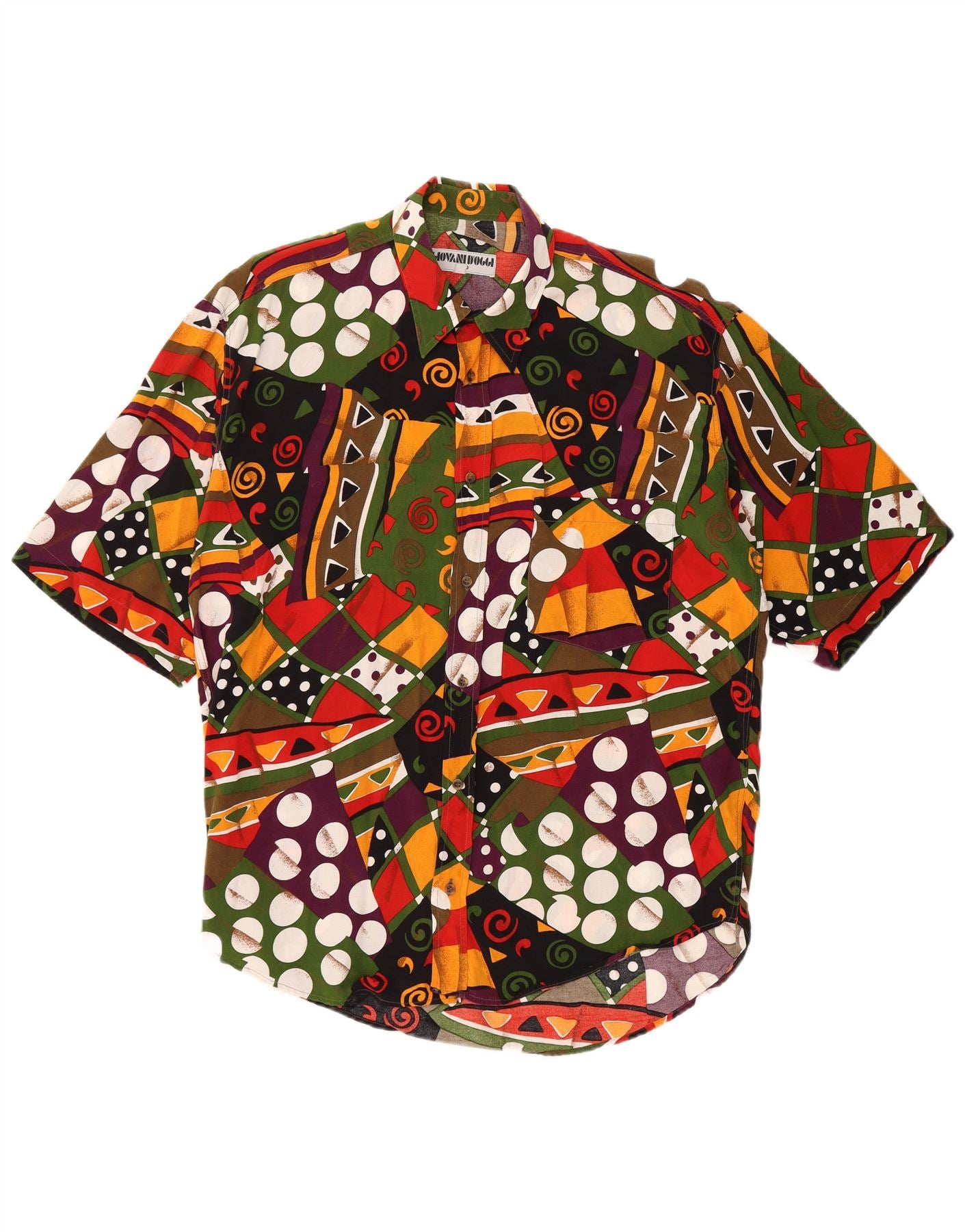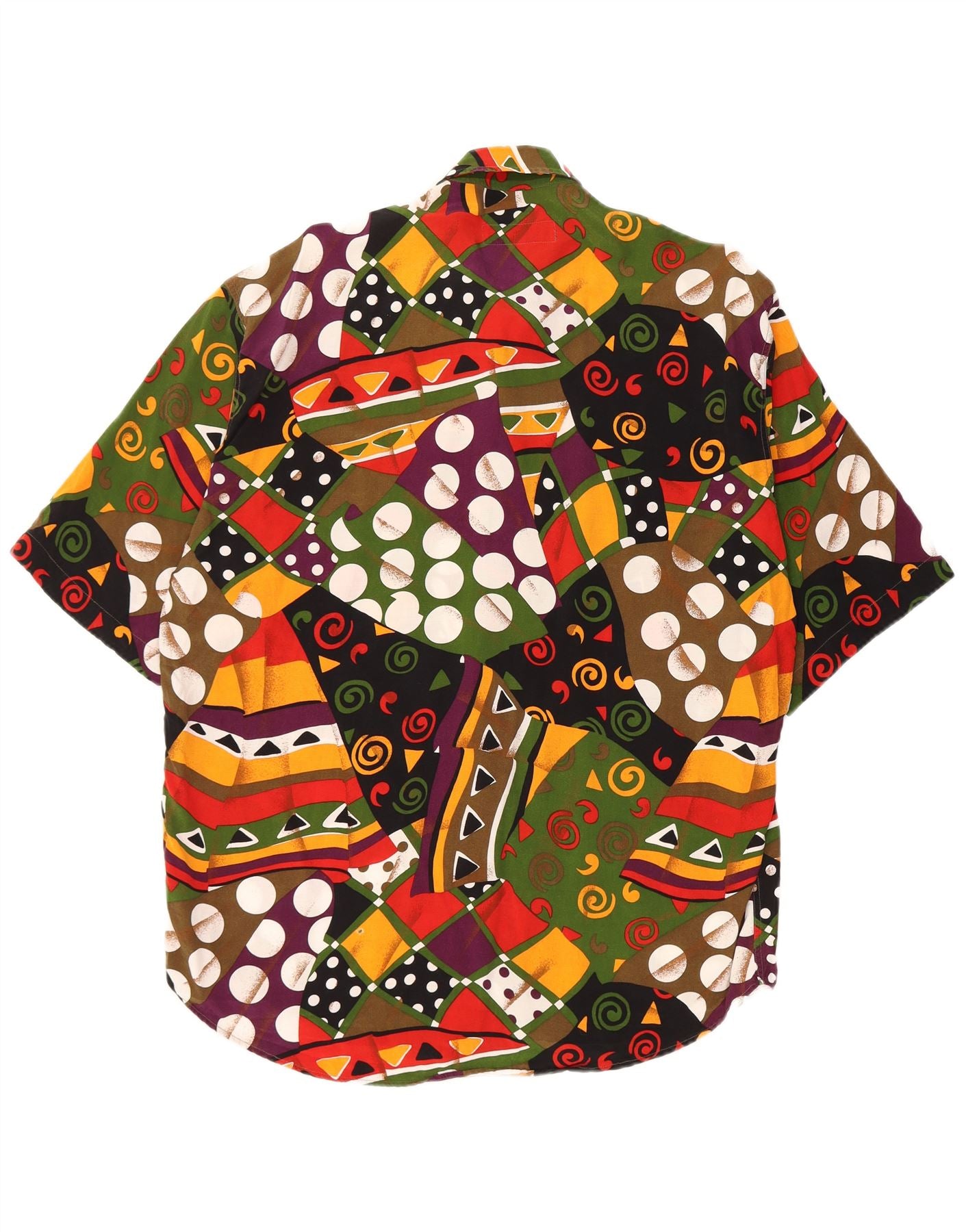 VINTAGE Hombres Patrón Abstracto Camisa de Manga Corta Medio Multicolor