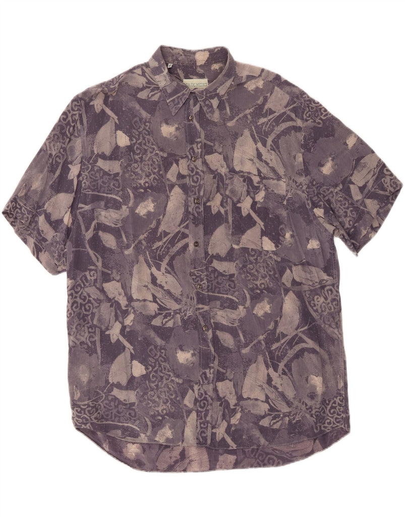 VINTAGE Camisa de manga corta con estampado abstracto para hombre XL Azul