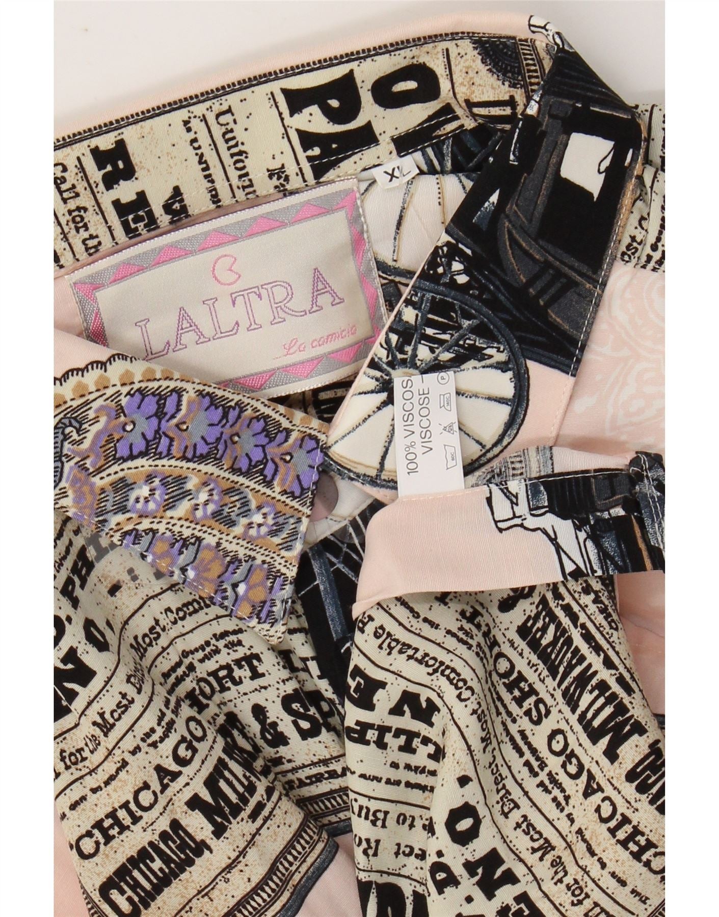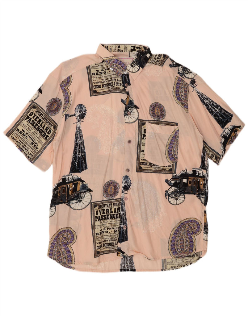 VINTAGE Camisa de manga corta con estampado abstracto para hombre XL Viscosa patchwork rosa