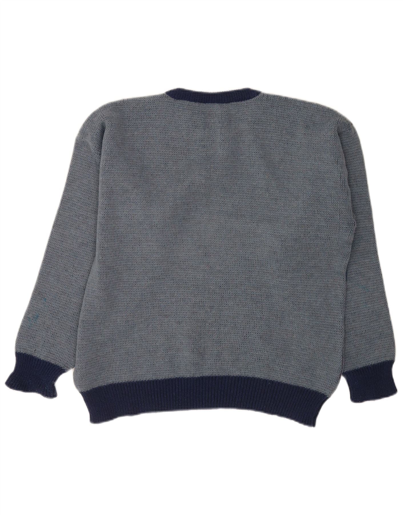 Vintage hombres barco cuello jumper suéter IT 52 grande azul geométrico