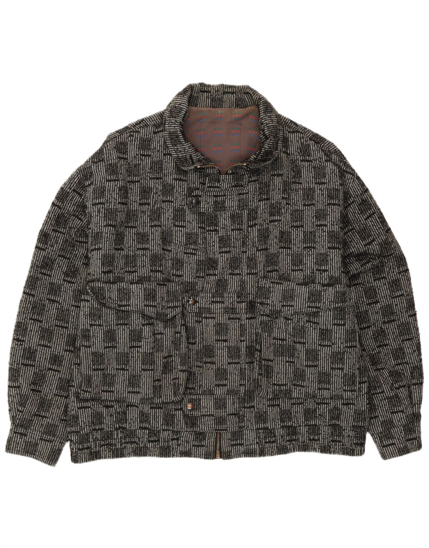 VINTAGE Chaqueta bomber para hombre IT 52 XL Lana a cuadros gris