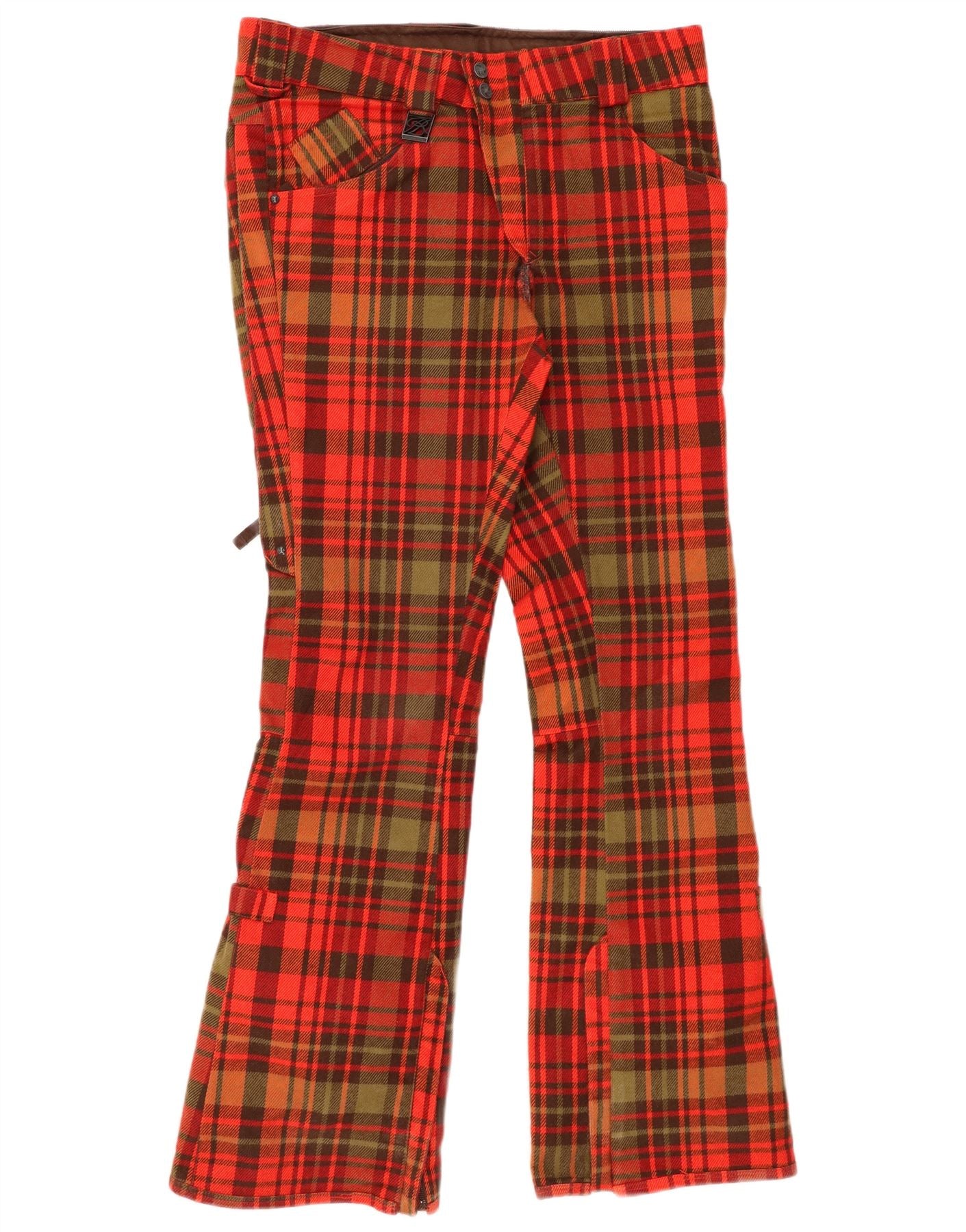 VINTAGE Hombres Bootcut Cortavientos Pantalones Pequeños W29 L32 Rojo Check Acrílico