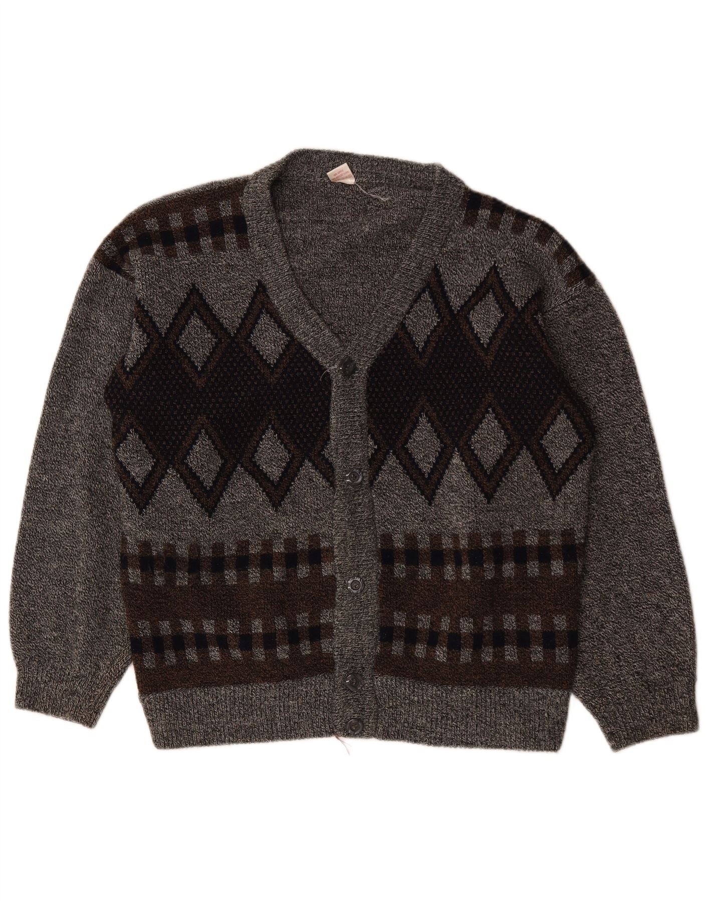 VINTAGE Suéter cárdigan para hombre 2XL Gris Argyle/Diamante Acrílico
