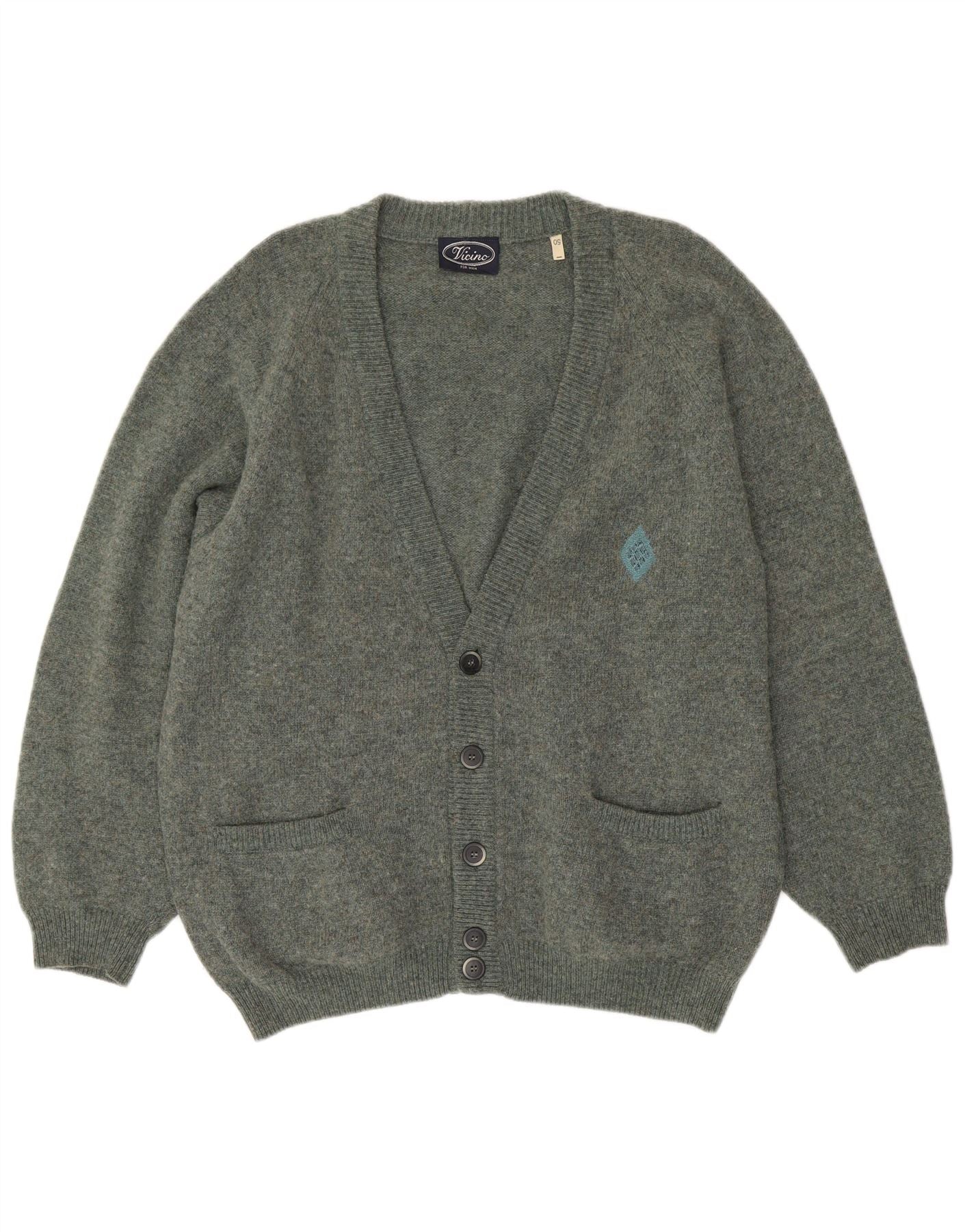 VINTAGE Suéter cárdigan para hombre IT 50 Lana verde medio