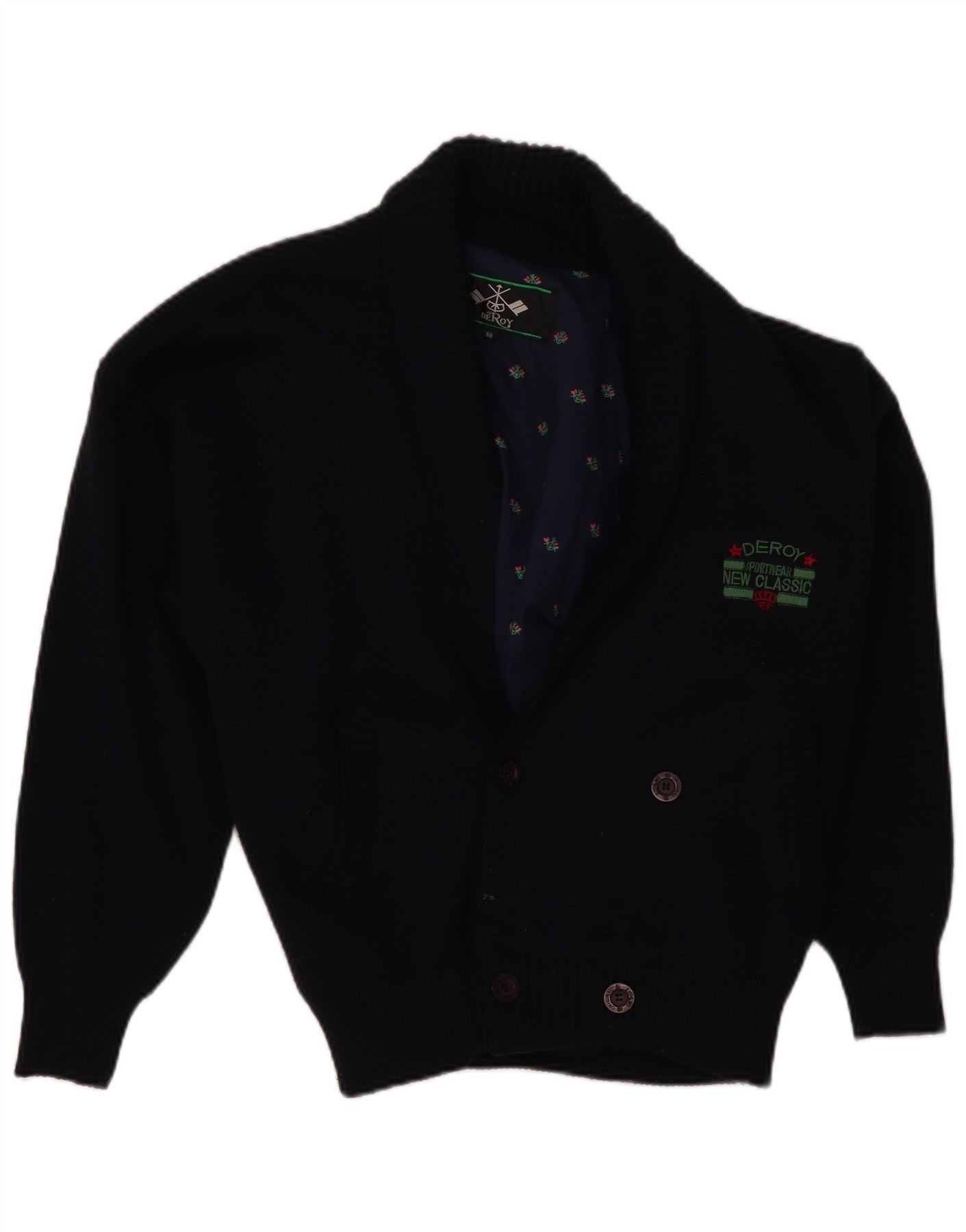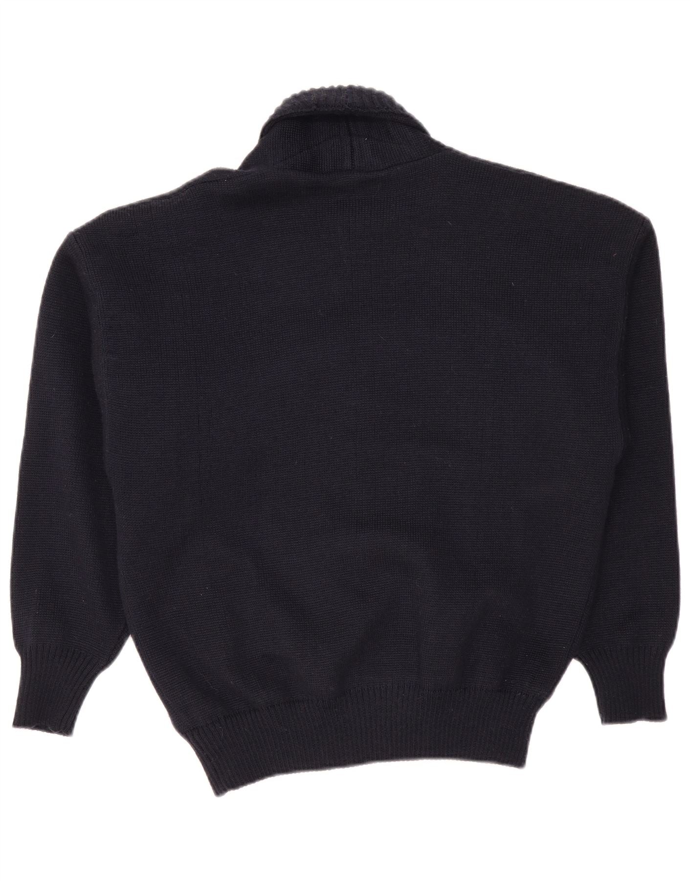 VINTAGE Suéter cárdigan para hombre IT 50 Lana azul marino medio