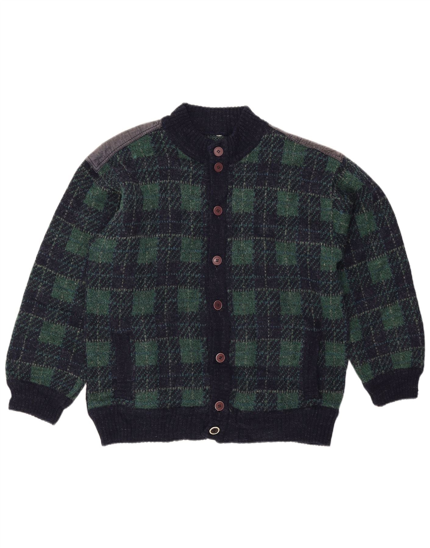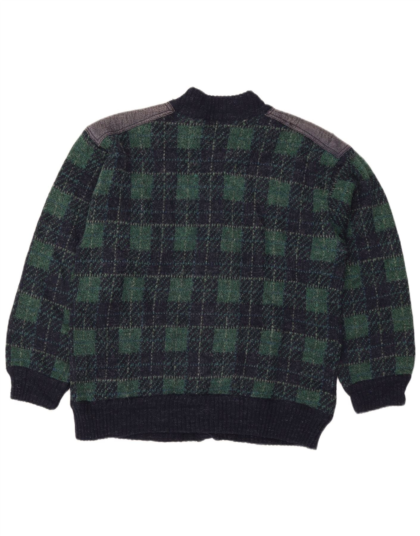 Vintage hombres Cardigan suéter IT 54 XL azul marino comprobar lana