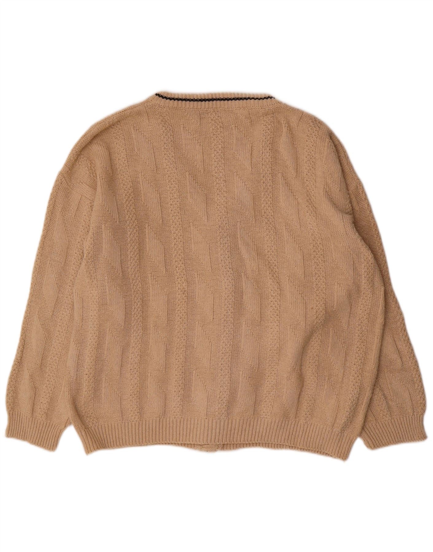 VINTAGE Hombres Cardigan Suéter Grande Algodón Beige