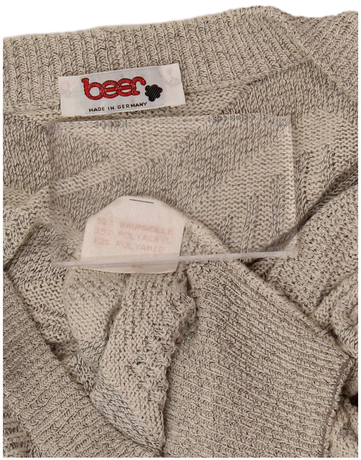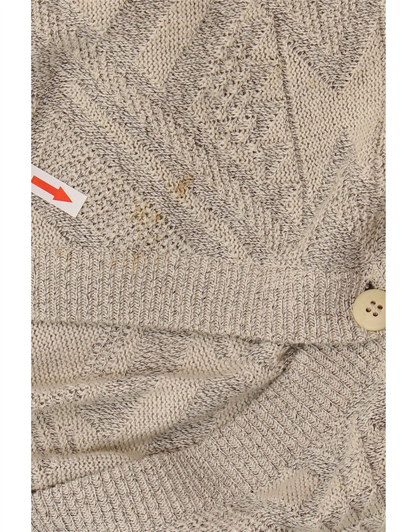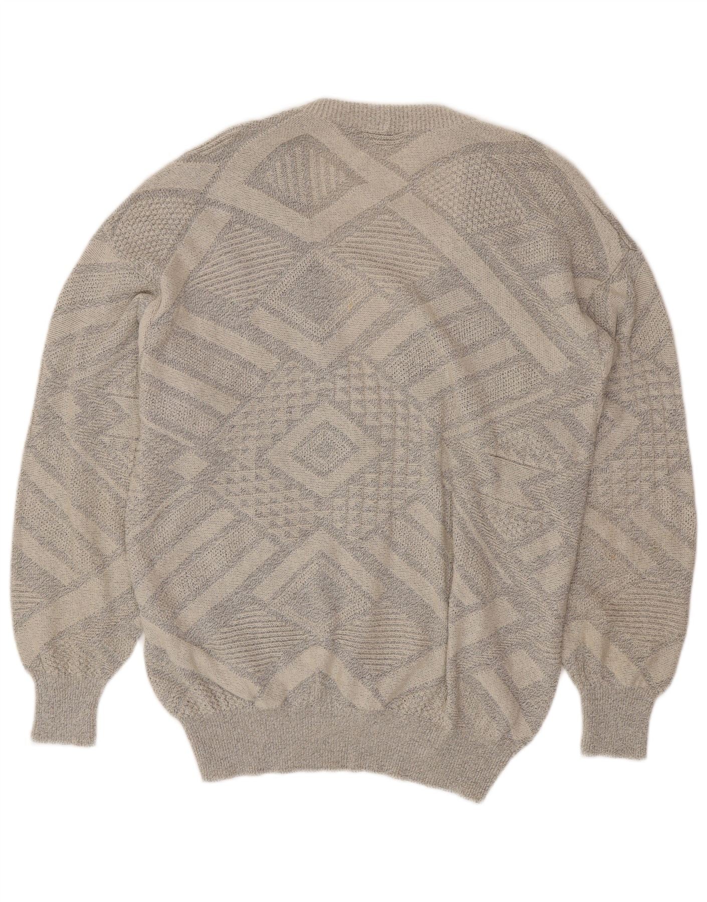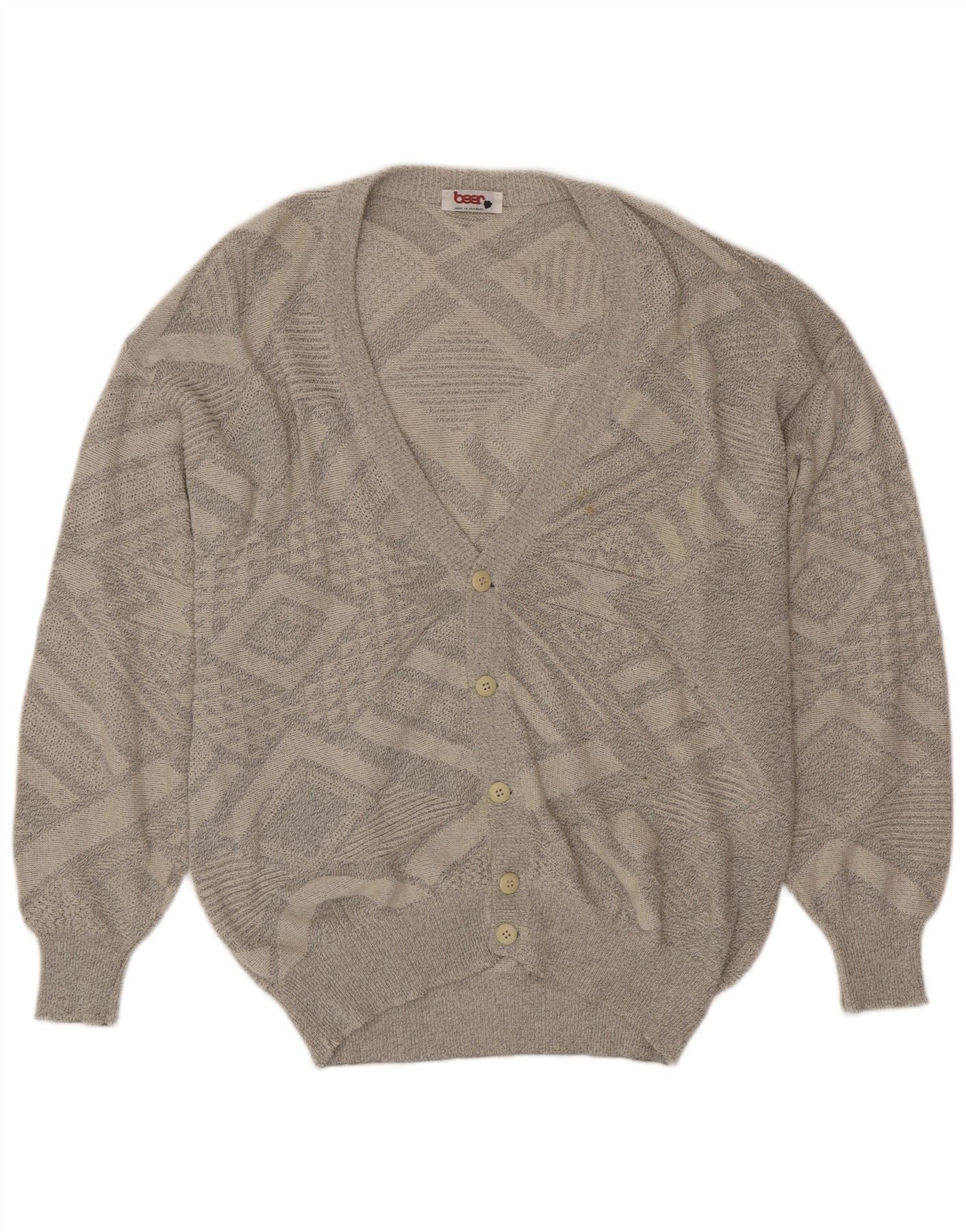 VINTAGE Hombres Cardigan Suéter Grande Gris Geométrico Algodón