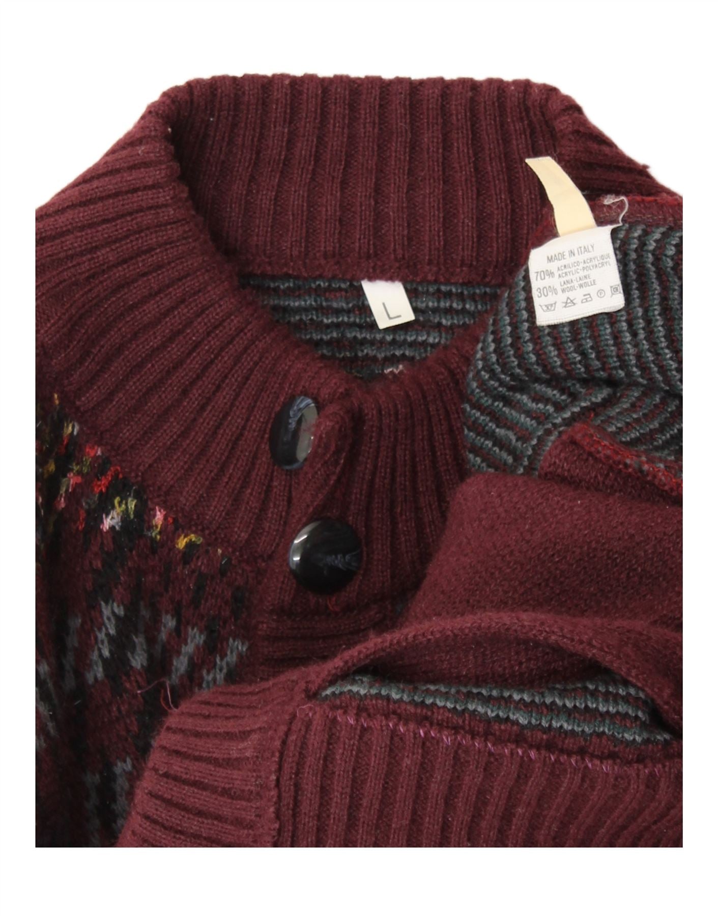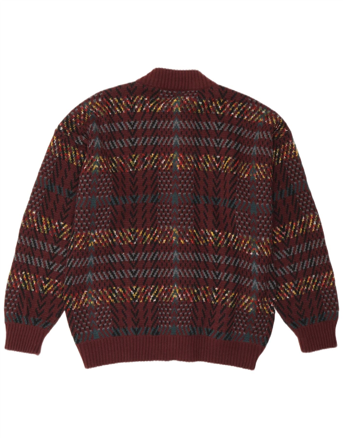 VINTAGE Hombres Cardigan Suéter Gran Granate Geométrico Acrílico