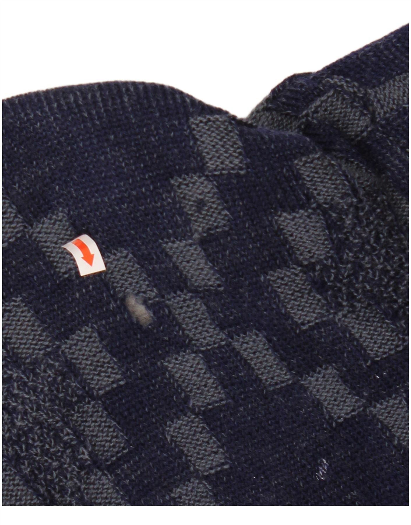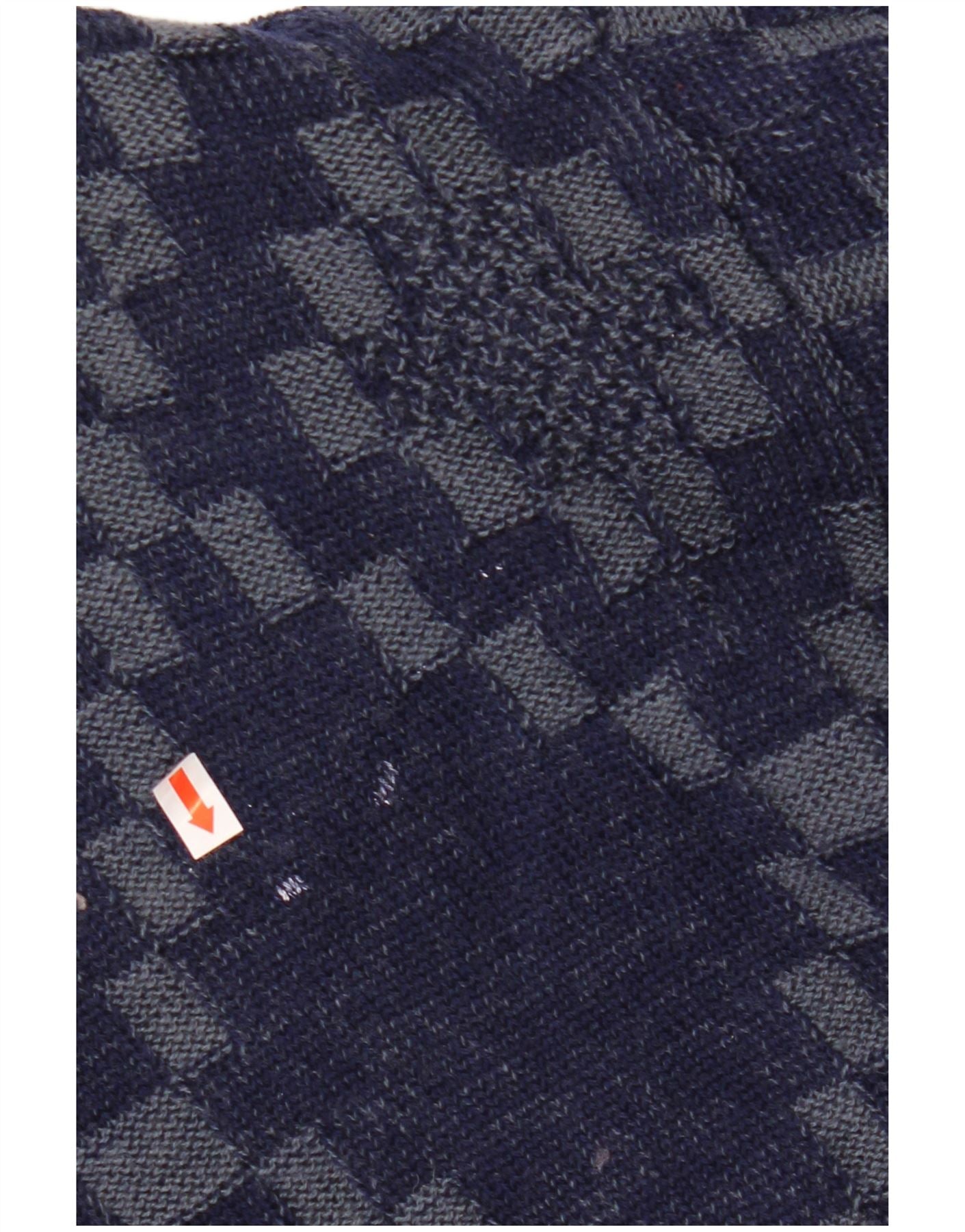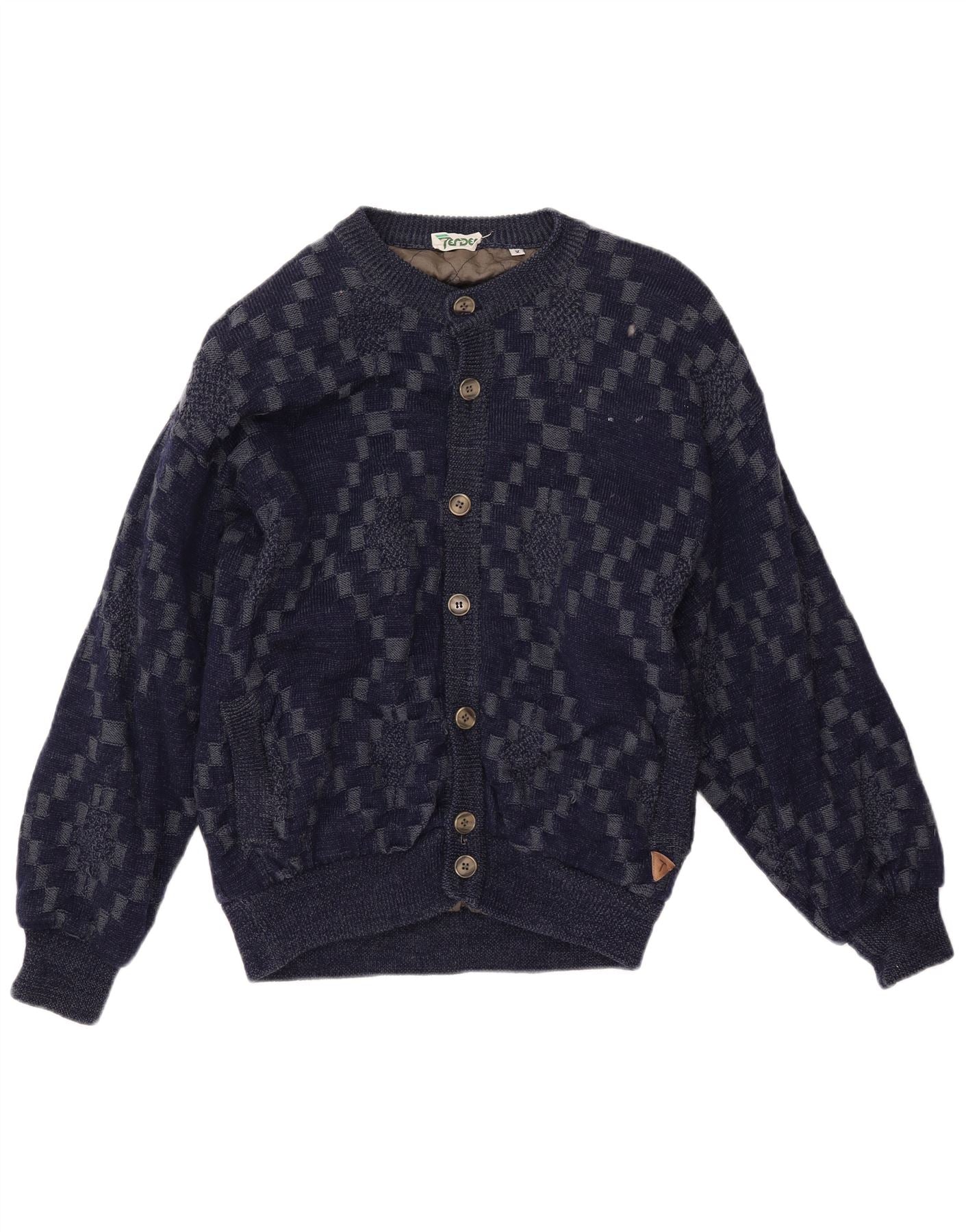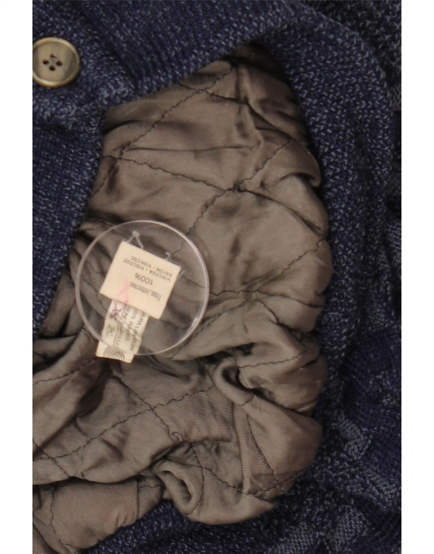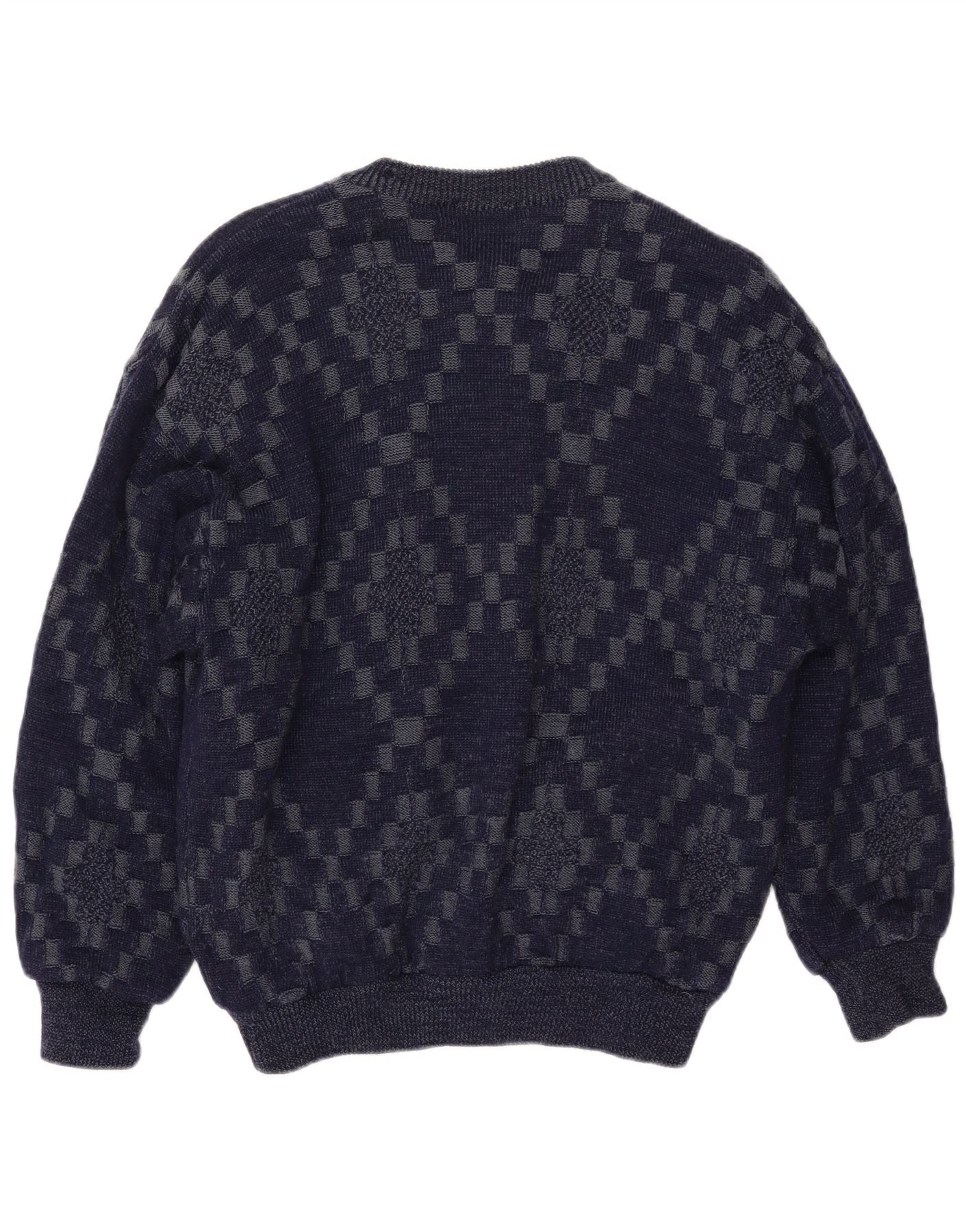VINTAGE Hombres Cardigan Suéter Grande Azul Marino Geométrico Viscosa