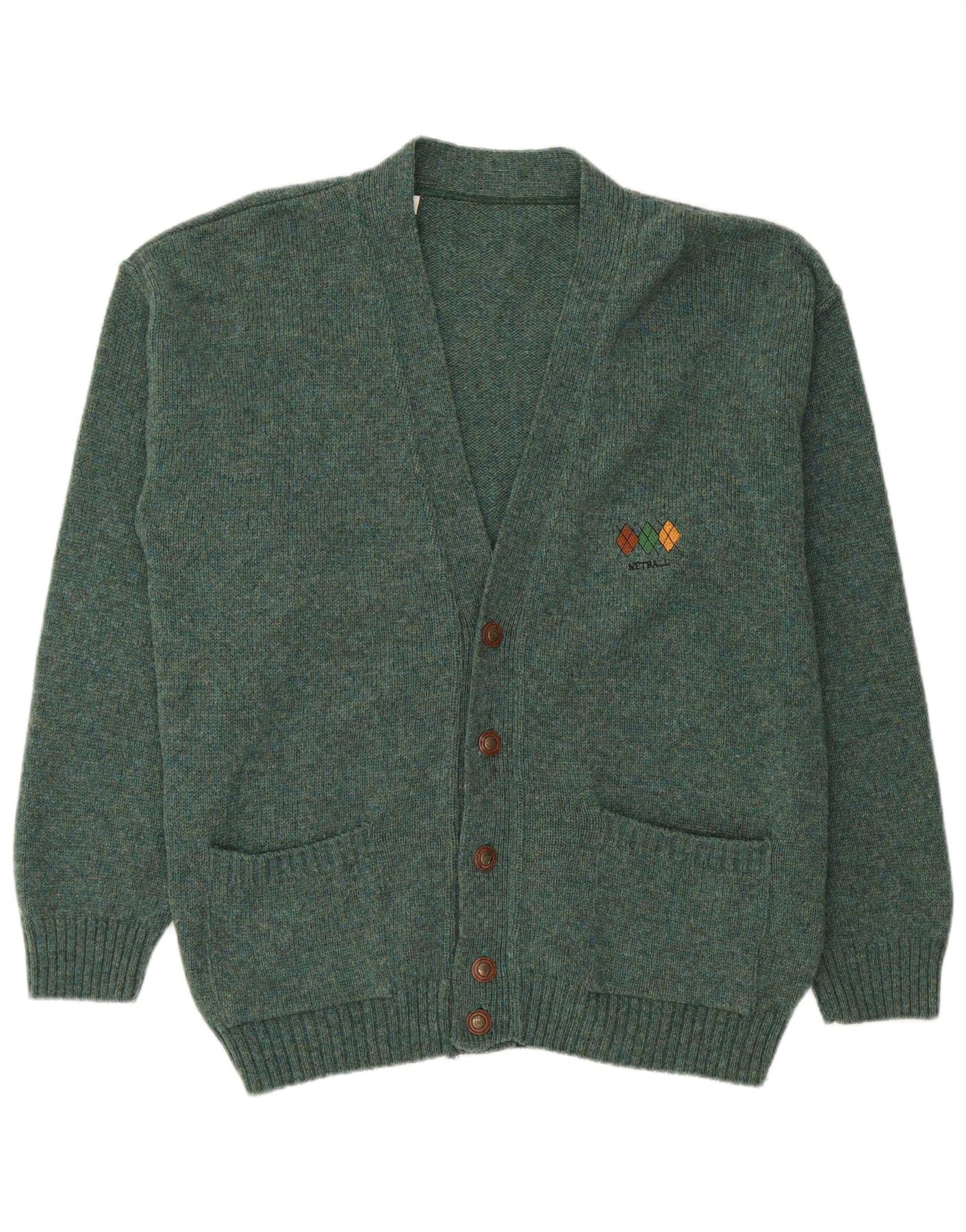 VINTAGE Suéter Cárdigan para Hombre XL Lana Verde