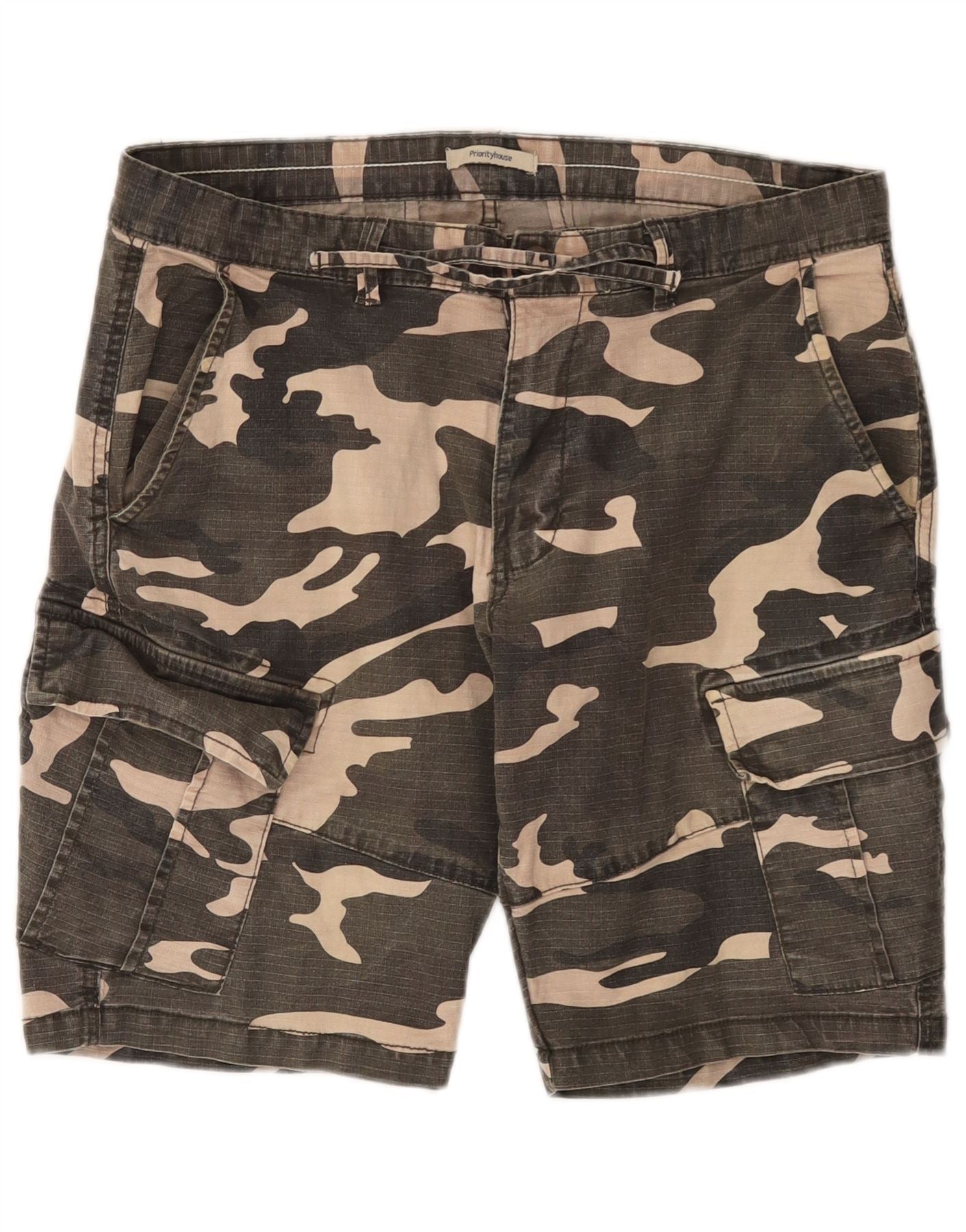 VINTAGE Pantalones cortos cargo para hombre W34 Algodón de camuflaje caqui grande