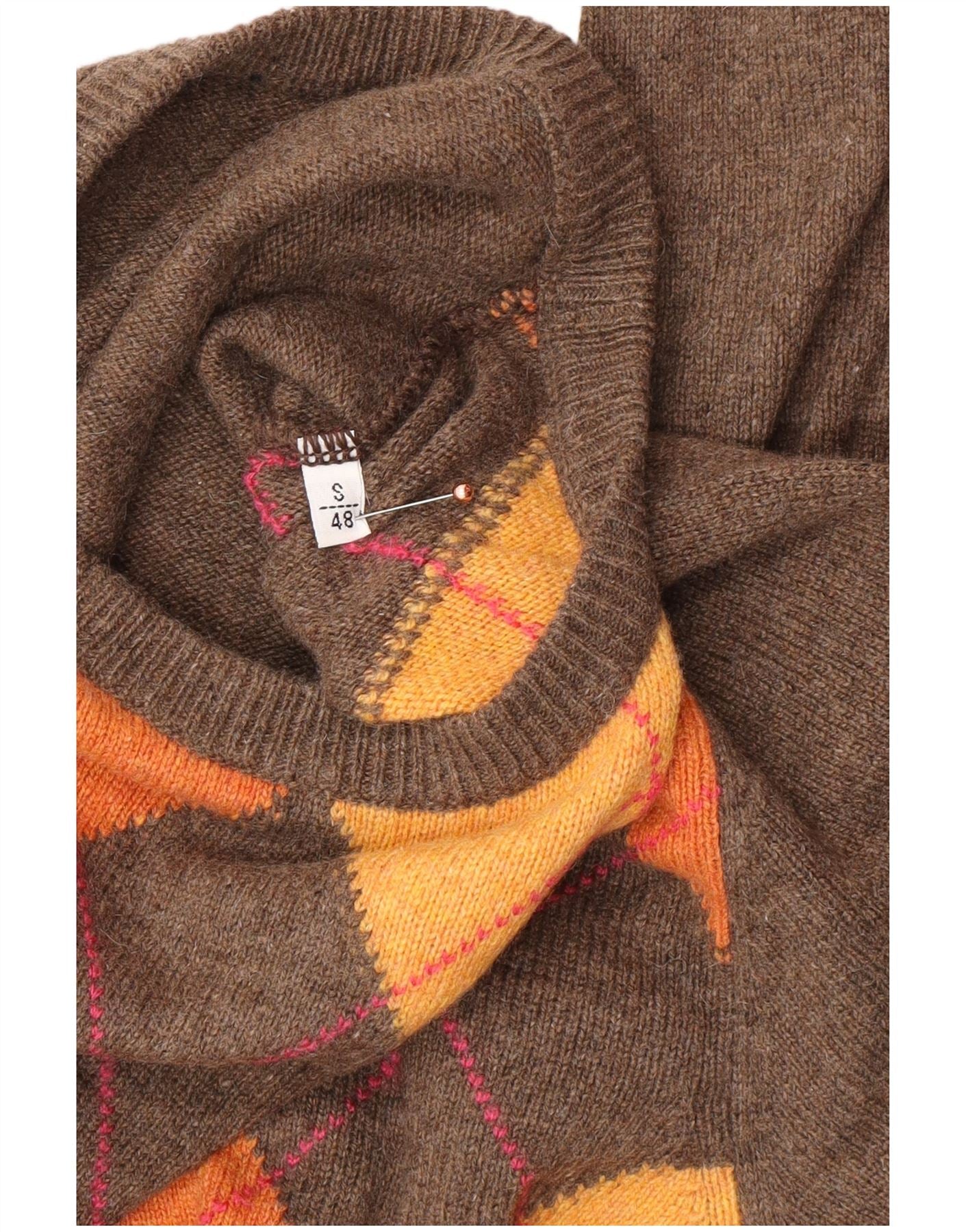 VINTAGE Jersey de cuello redondo para hombre IT 48 Pequeño Marrón Argyle/Diamante