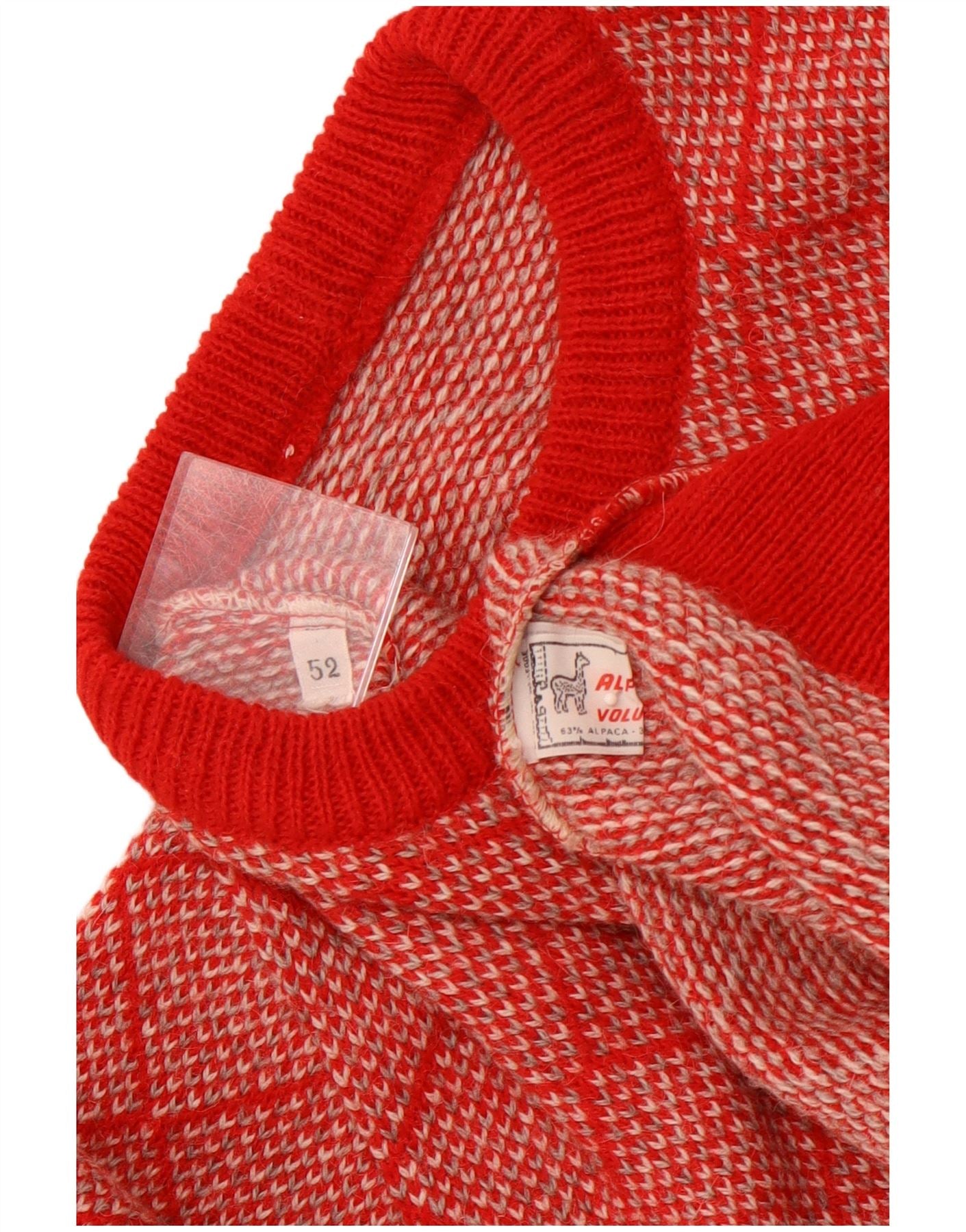 VINTAGE Hombres Crew Neck Jumper Suéter IT 52 Grande Rojo Geométrico