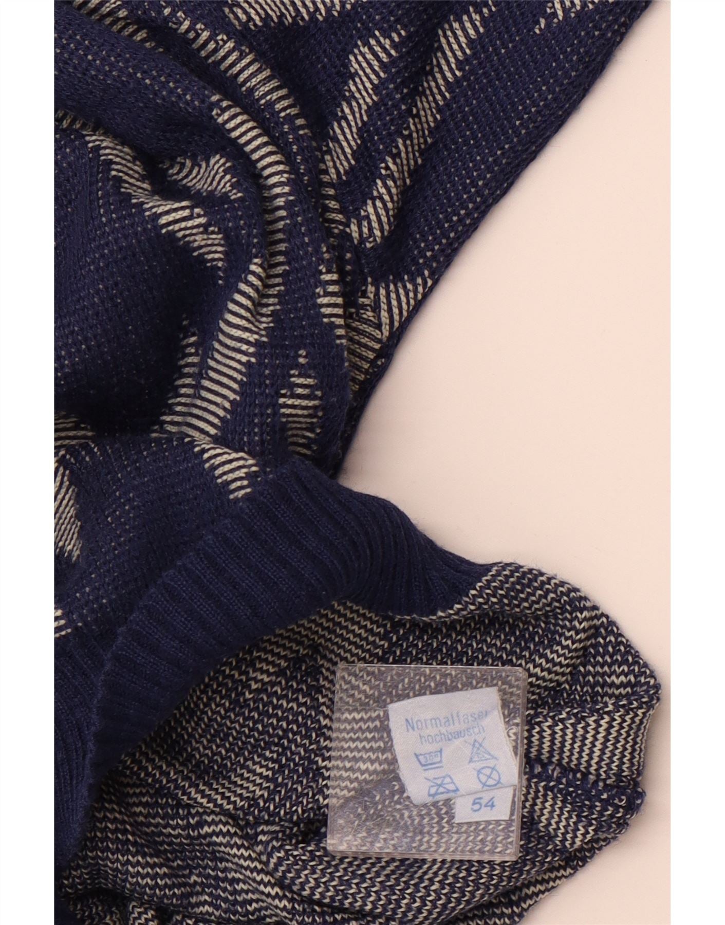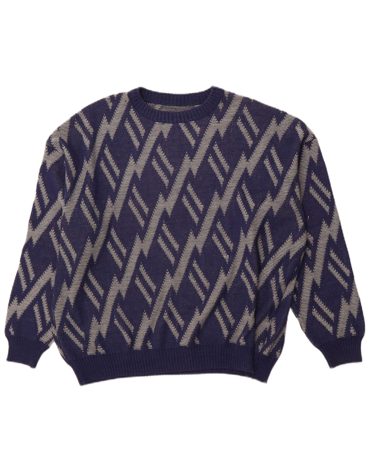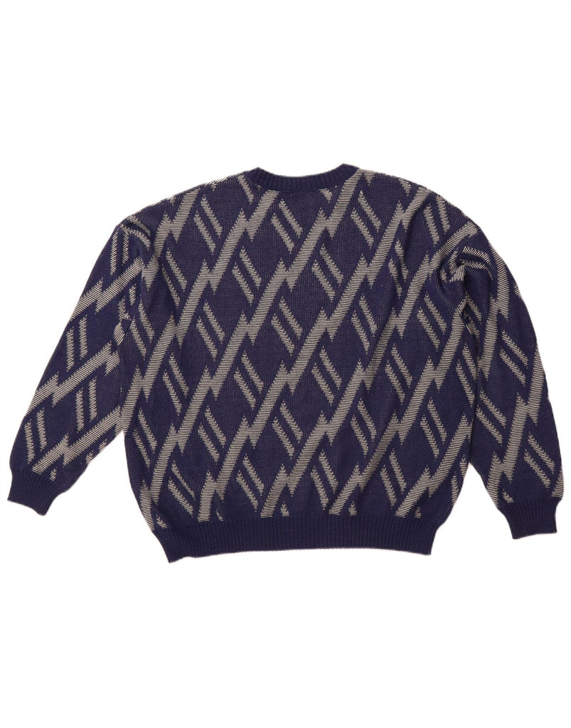 VINTAGE Jersey de cuello redondo para hombre IT 54 XL Azul Geométrico