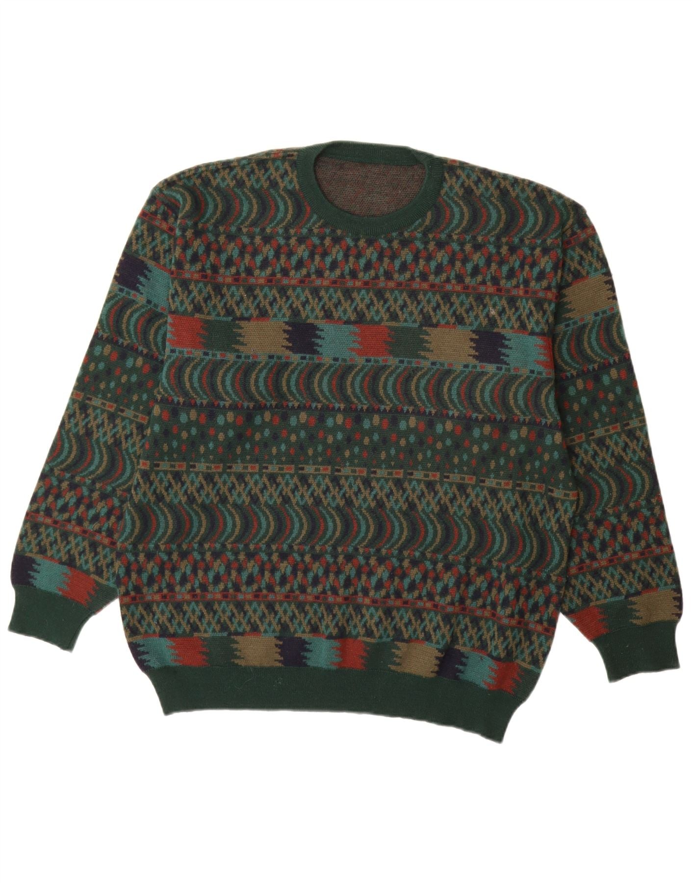 VINTAGE Jersey de cuello redondo para hombre IT 54 XL Lana verde Fair Isle
