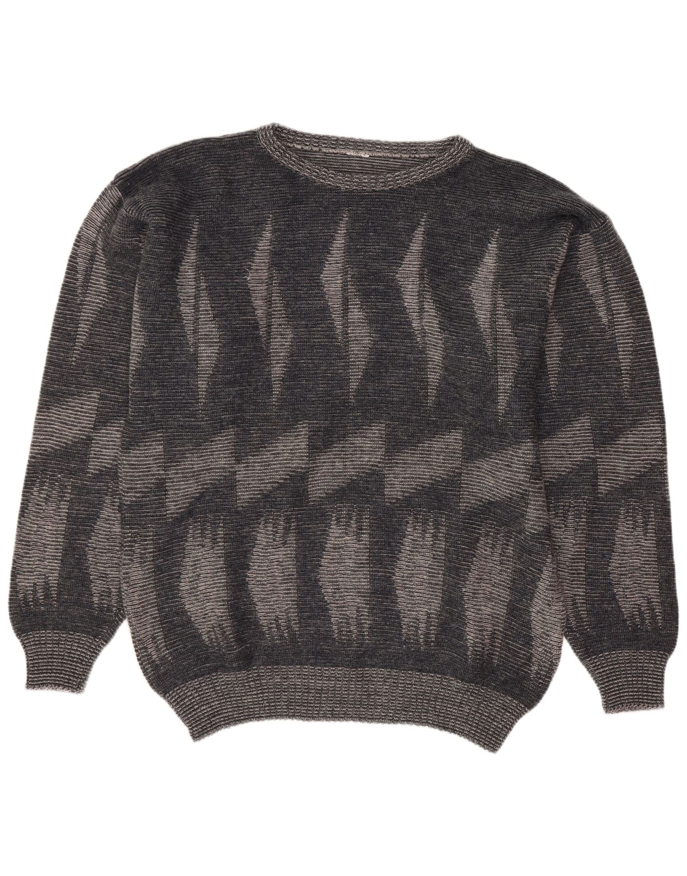 Vintage hombres cuello redondo jersey suéter grande gris geométrico