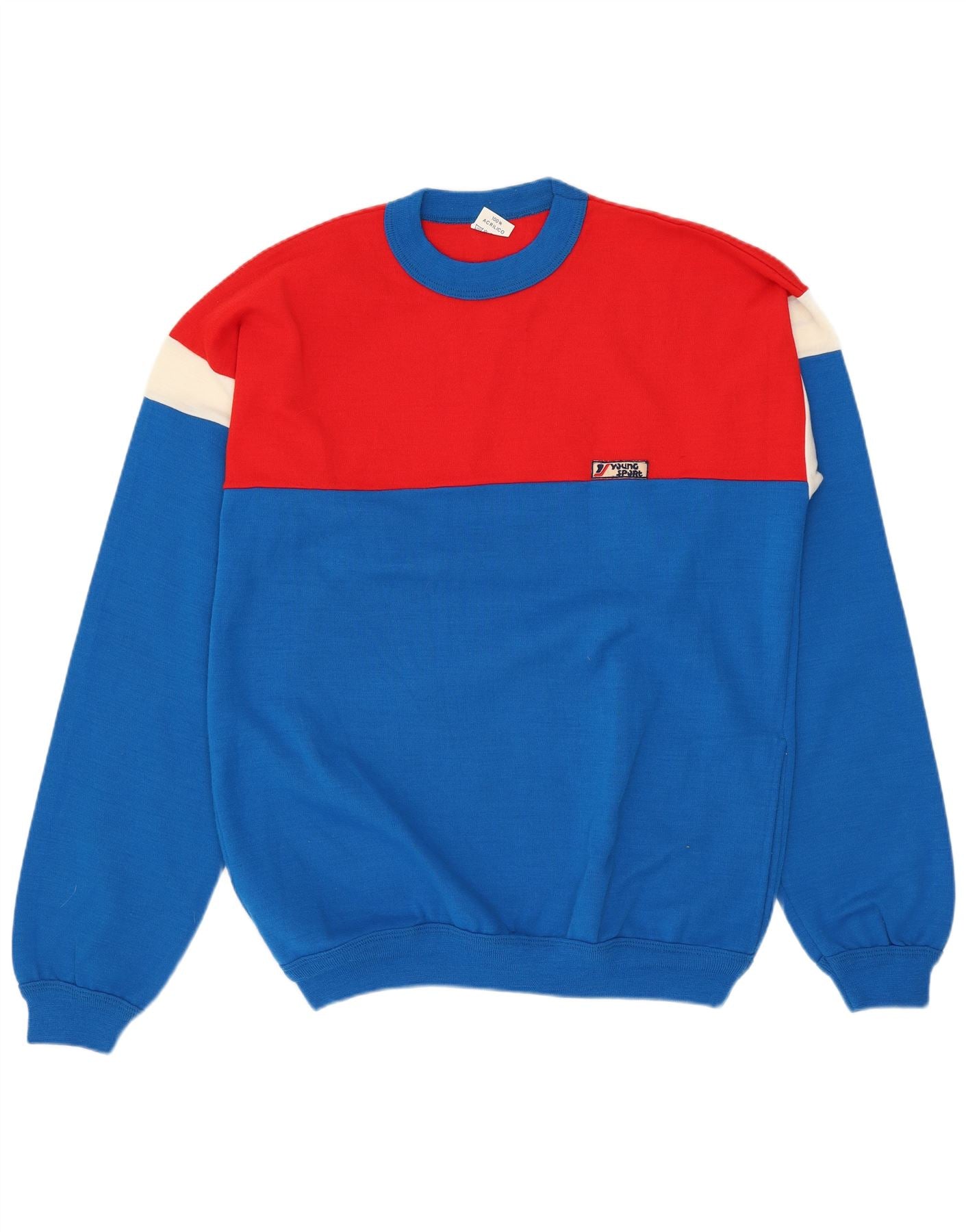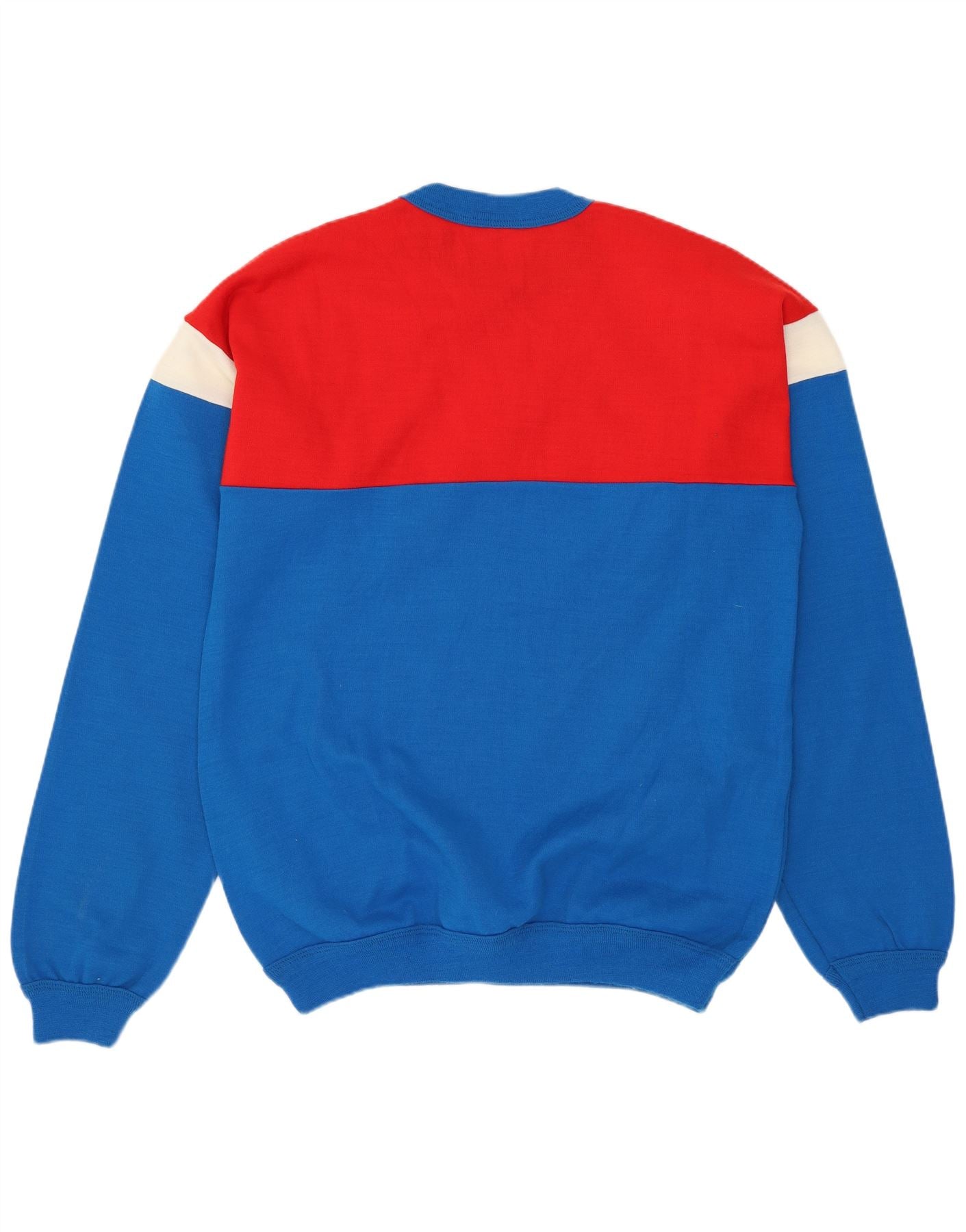 VINTAGE Jersey de cuello redondo para hombre suéter azul medio colorblock acrílico