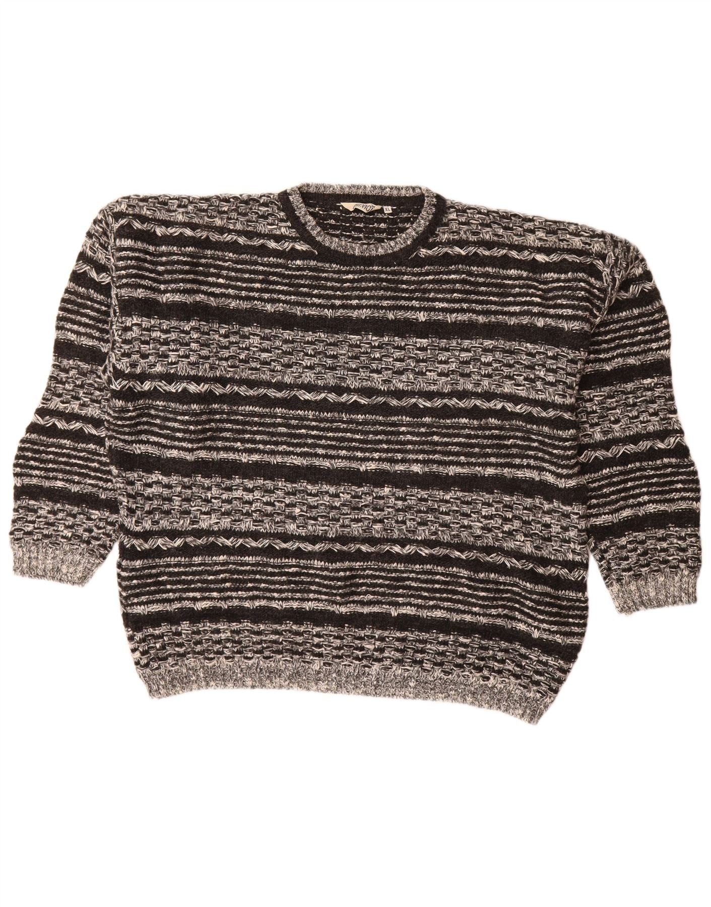 VINTAGE Jersey de cuello redondo para hombre XL Lana geométrica negra